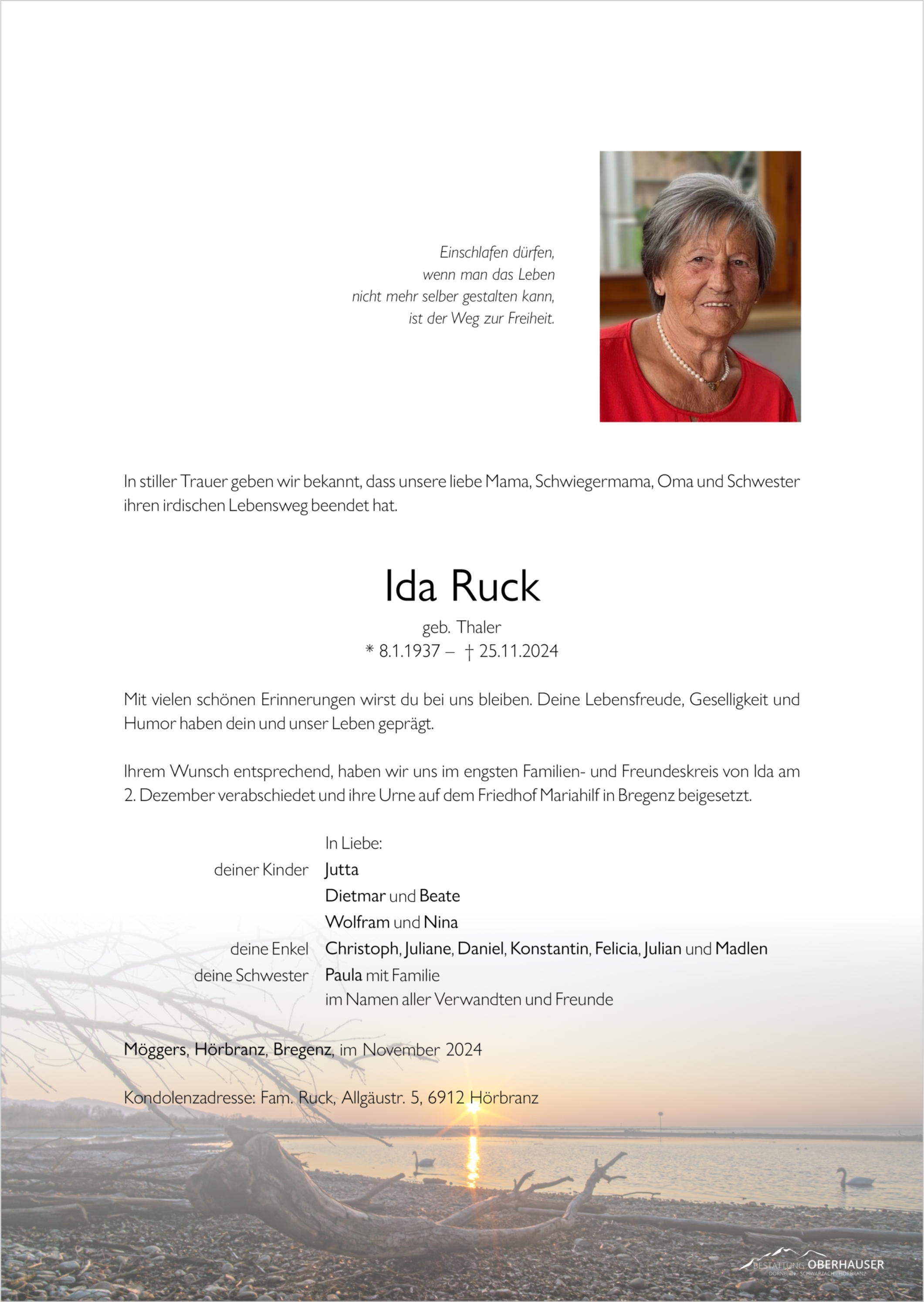 Bestattung wurde durchgeführt von: Carolin und Christoph Metzler Bestattung Oberhauser GesmbH Franz-Michael-Felder Straße 10 6850 - Dornbirn Tel.: 05572/20630 zum Bestatter