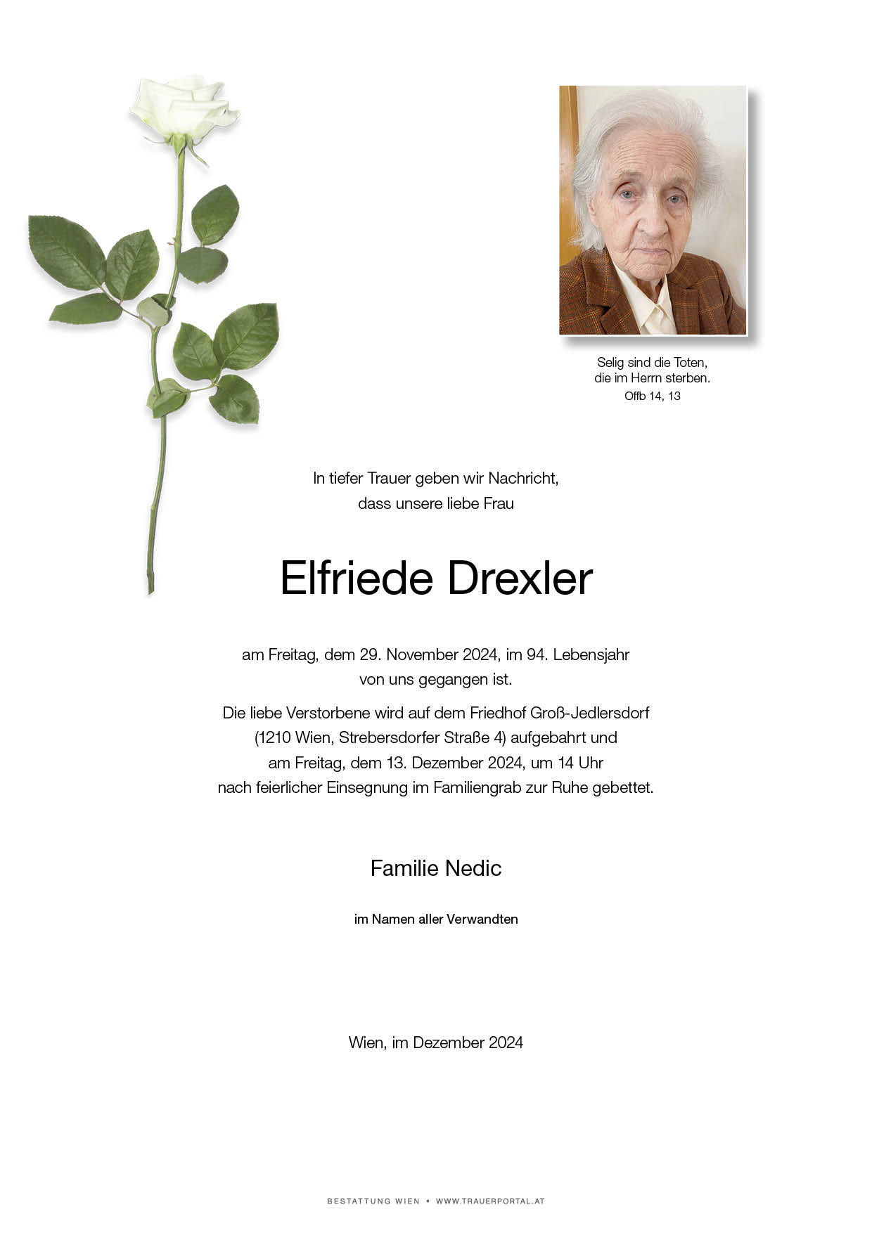 Bestattung wurde durchgeführt von: Bestattung Wien Bestattung Wien GmbH Simmeringer Hauptstraße 339 1110 - Wien (Simmering) Tel.: 01 501950 zum Bestatter