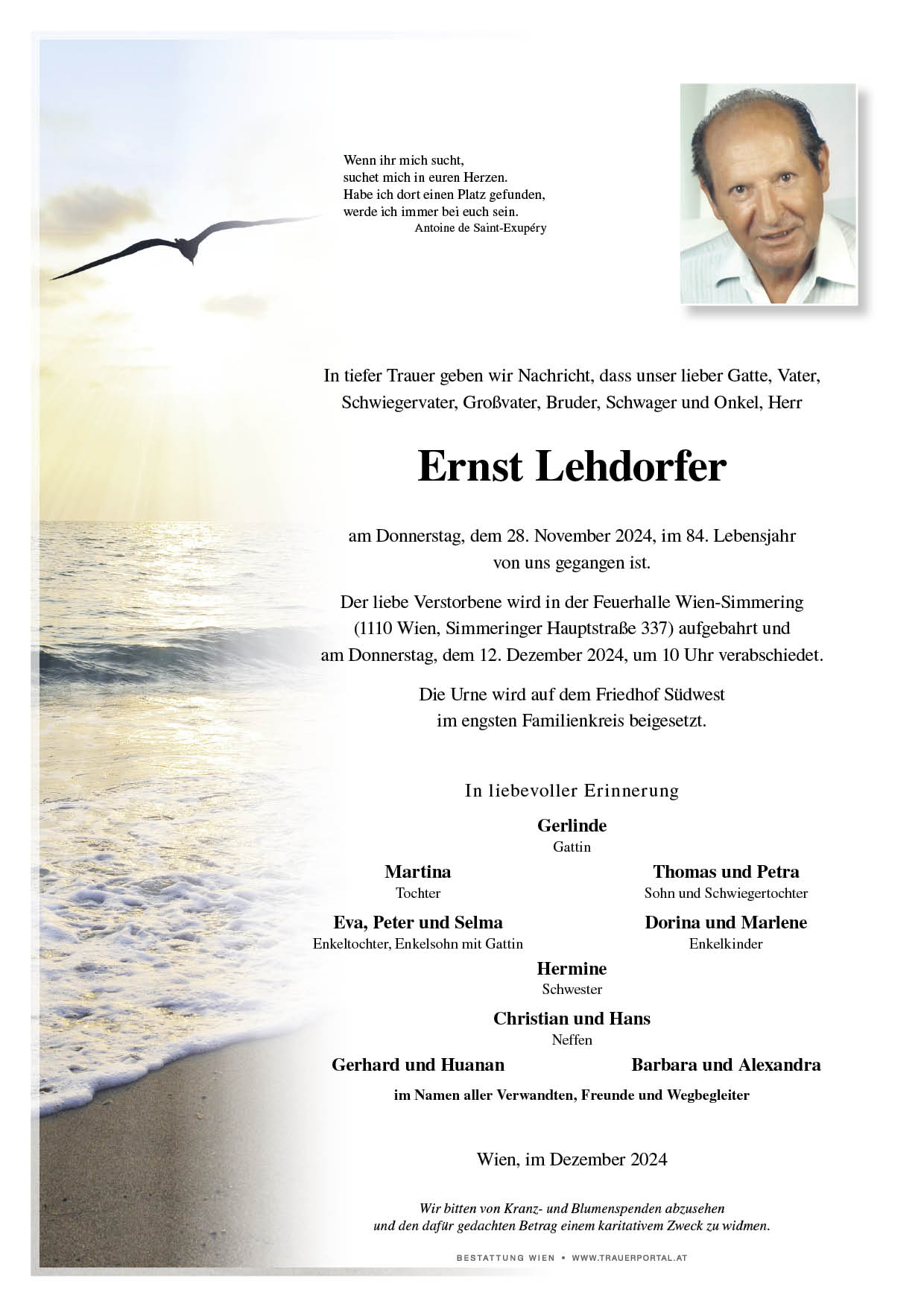 Neue Kerze für Ernst Josef Anton Lehdorfer entzünden.