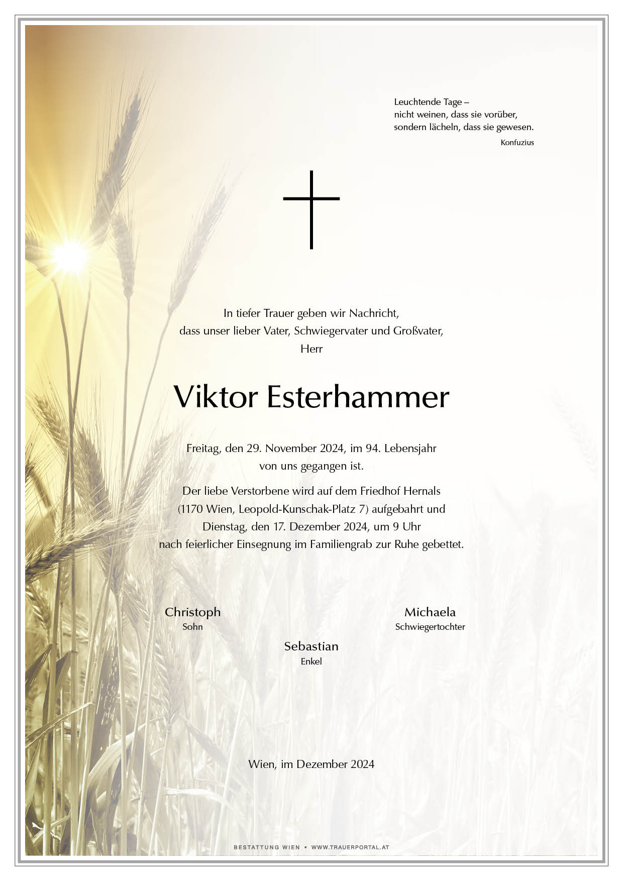 Bestattung wurde durchgeführt von: Bestattung Wien Bestattung Wien GmbH Simmeringer Hauptstraße 339 1110 - Wien (Simmering) Tel.: 01 501950 zum Bestatter