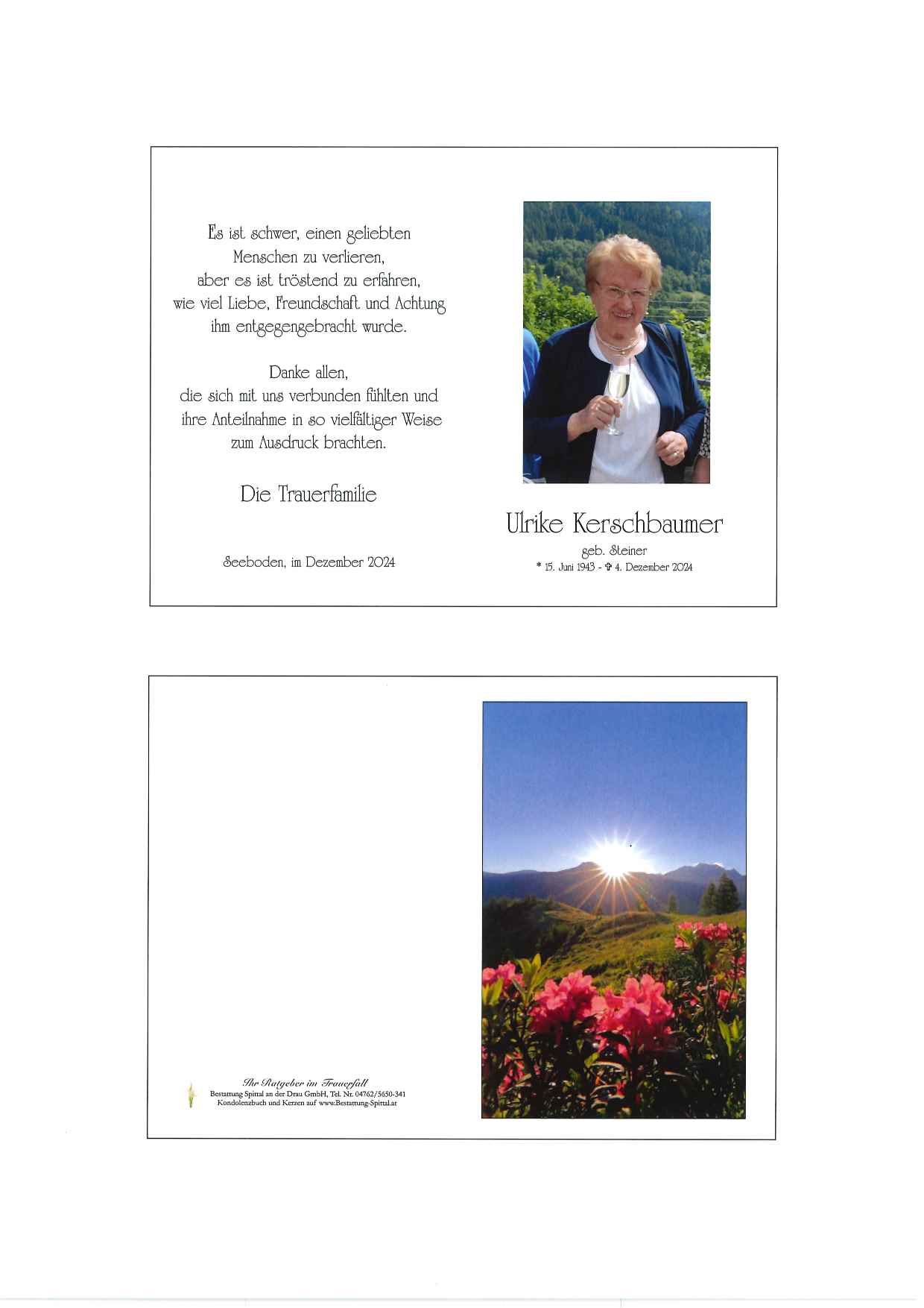 Neue Kerze für Ulrike Kerschbaumer entzünden.