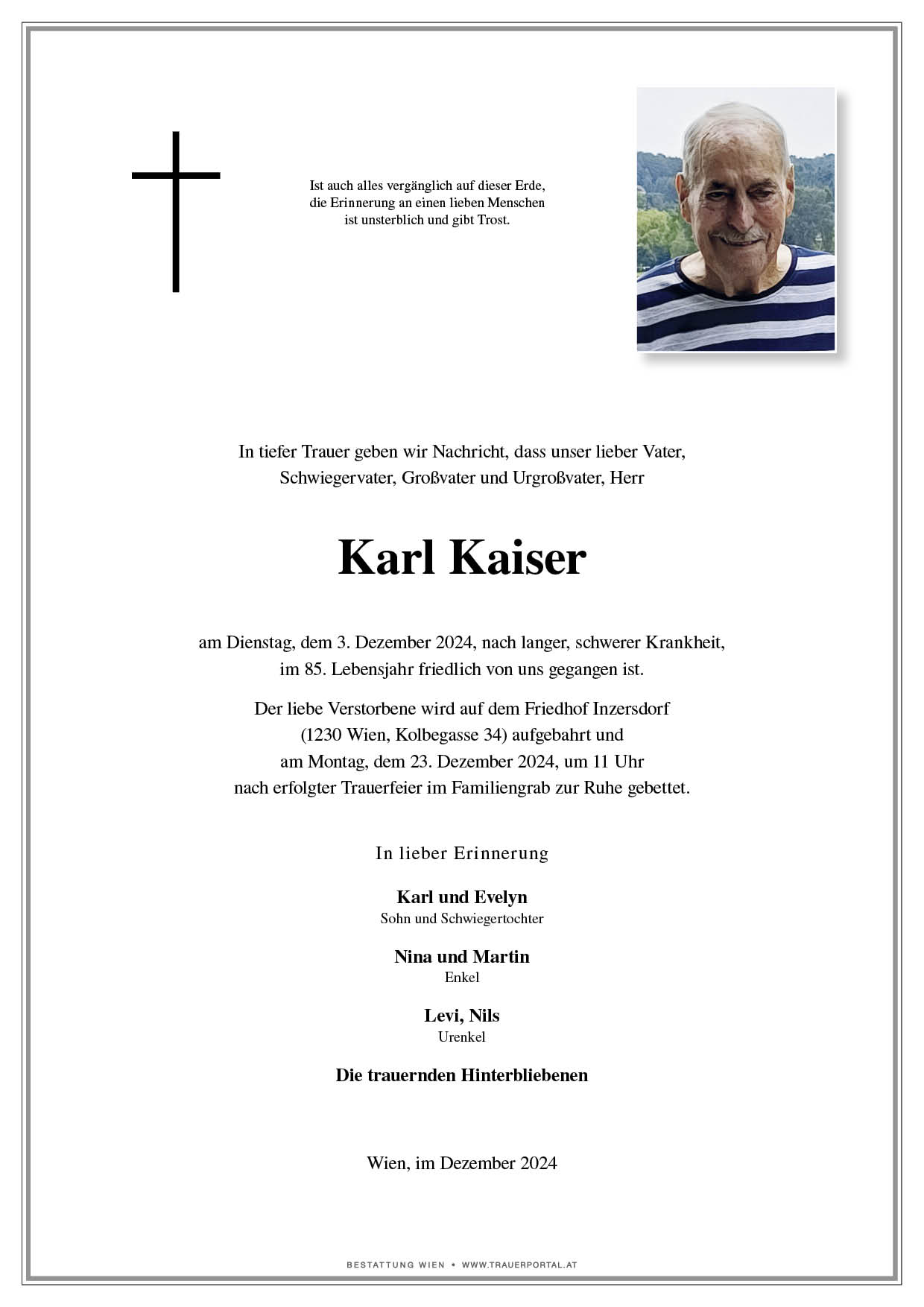 Neue Kerze für Gustav Karl Kaiser entzünden.