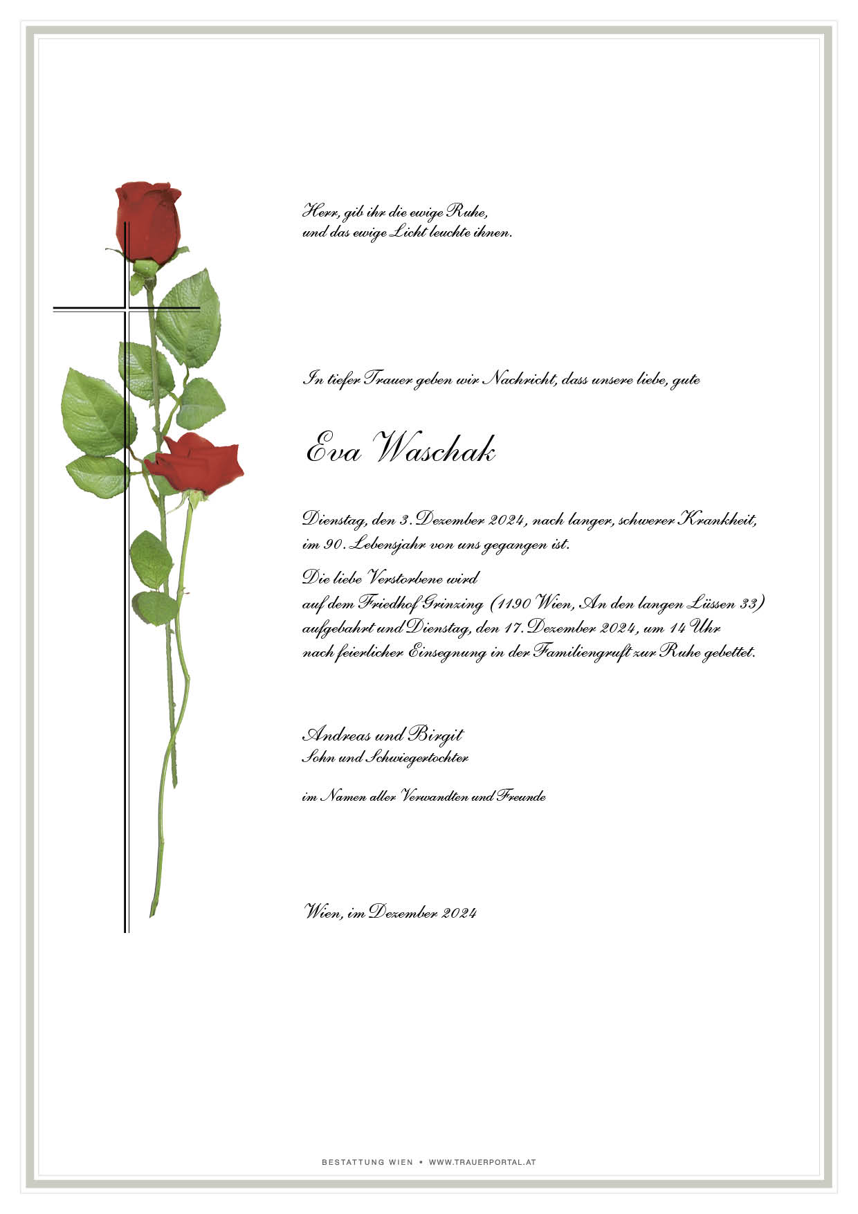 Bestattung wurde durchgeführt von: Bestattung Wien Bestattung Wien GmbH Simmeringer Hauptstraße 339 1110 - Wien (Simmering) Tel.: 01 501950 zum Bestatter
