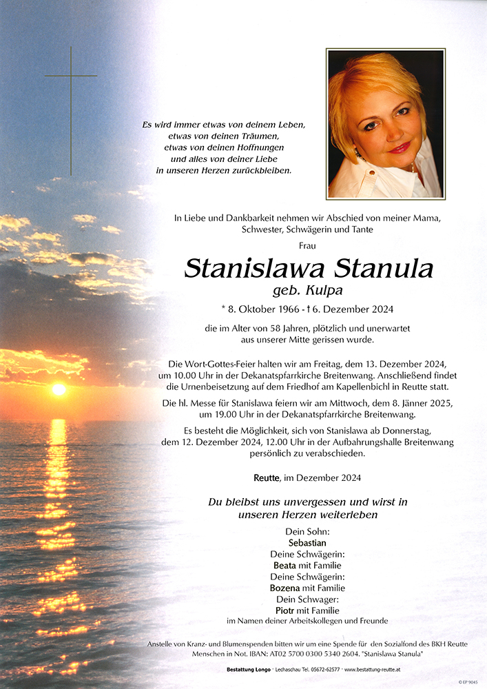Wir werden Stani in unseren Herzen weiter leben lassen.