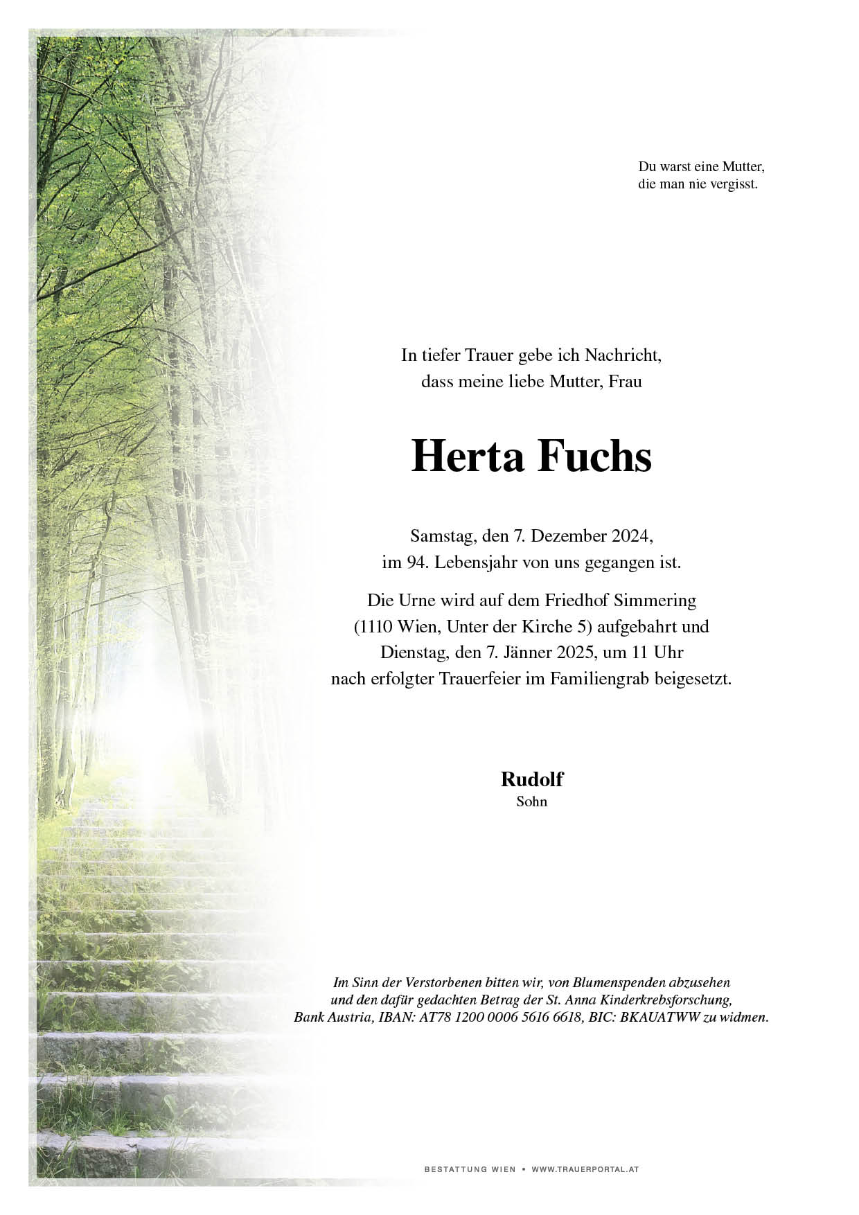 Bestattung wurde durchgeführt von: Bestattung Wien Bestattung Wien GmbH Simmeringer Hauptstraße 339 1110 - Wien (Simmering) Tel.: 01 501950 zum Bestatter