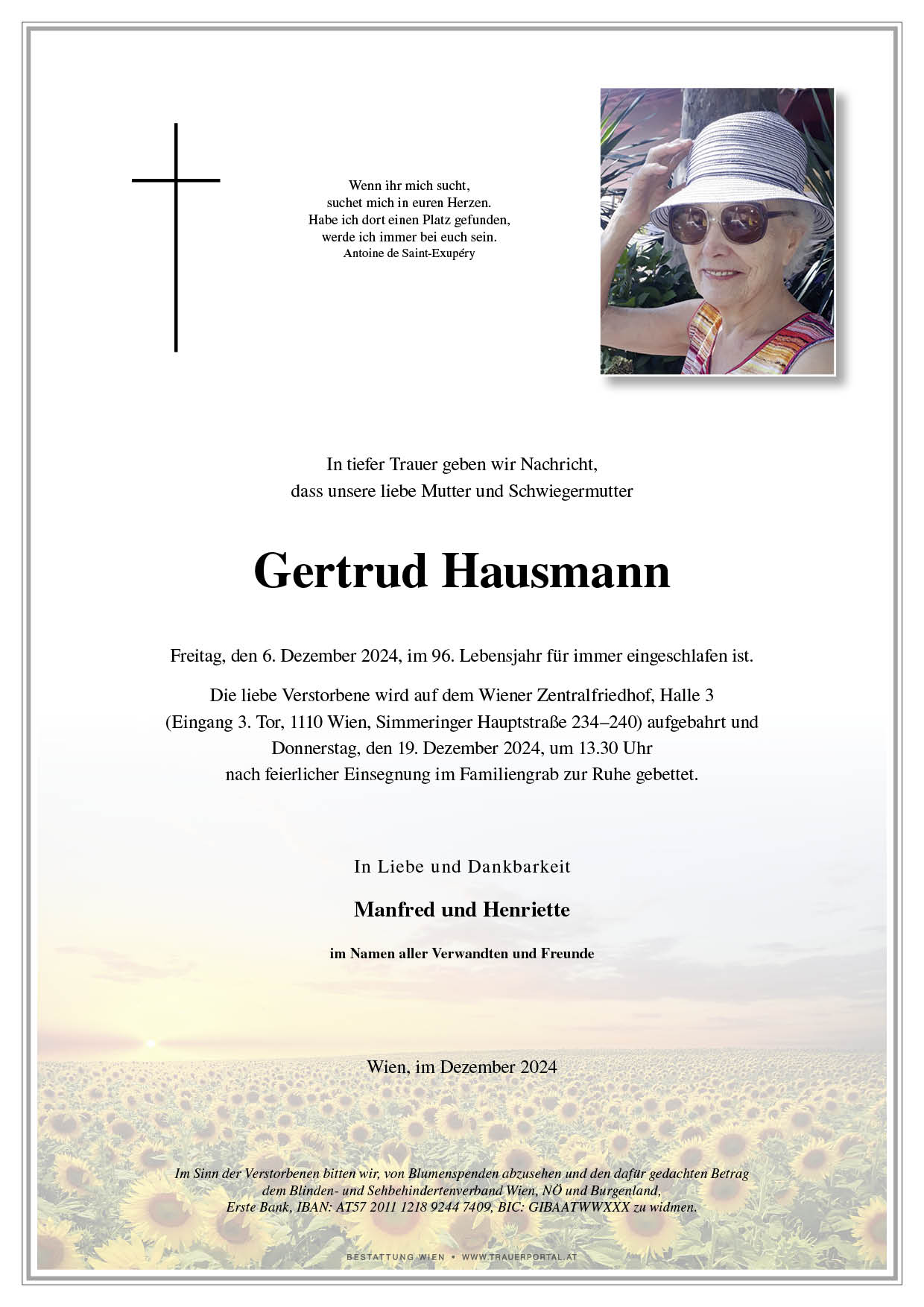 Neue Kerze für Gertrud Rosa Maria Hausmann entzünden.