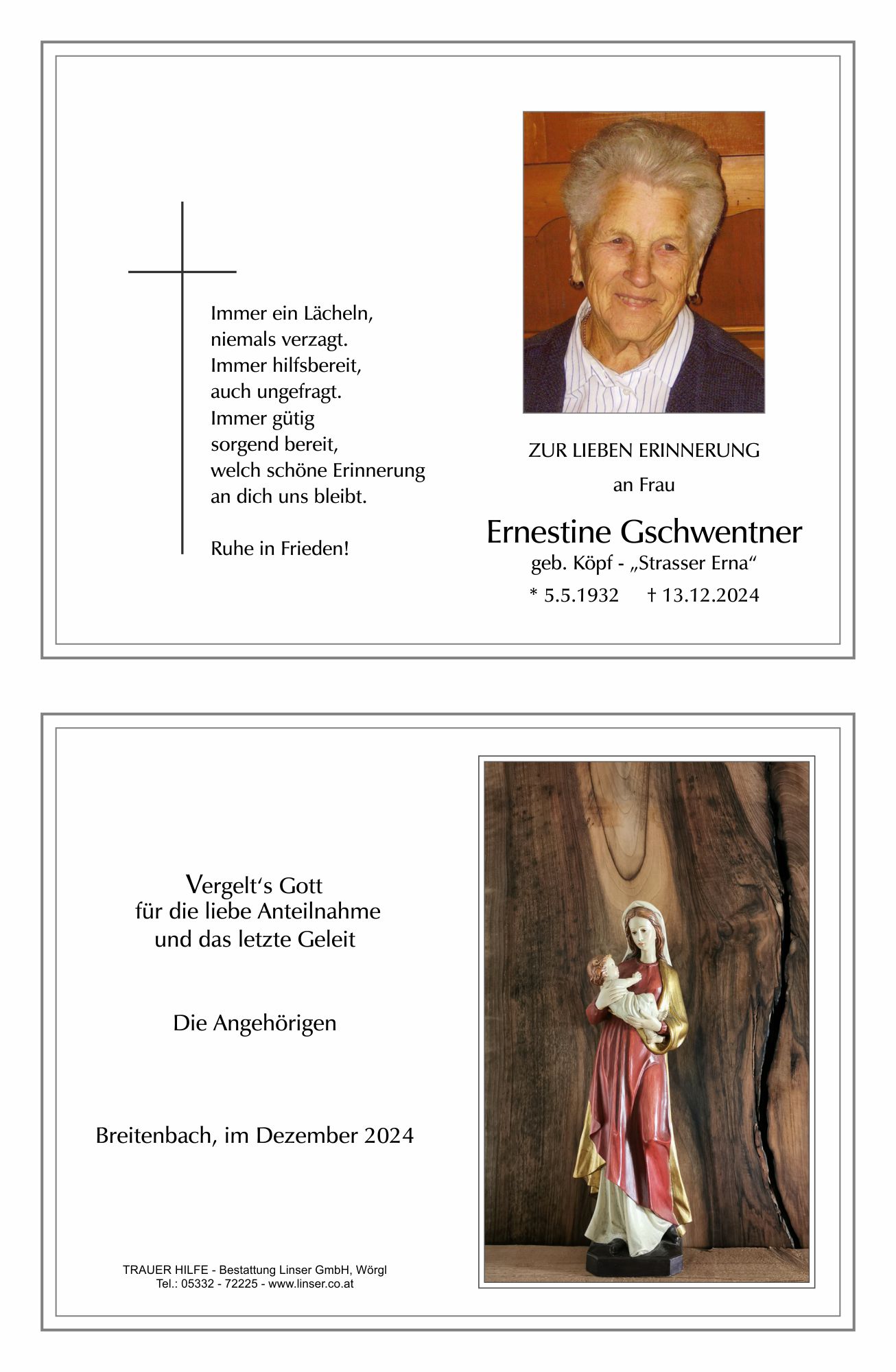 Neue Kerze für Ernestine Gschwentner entzünden.