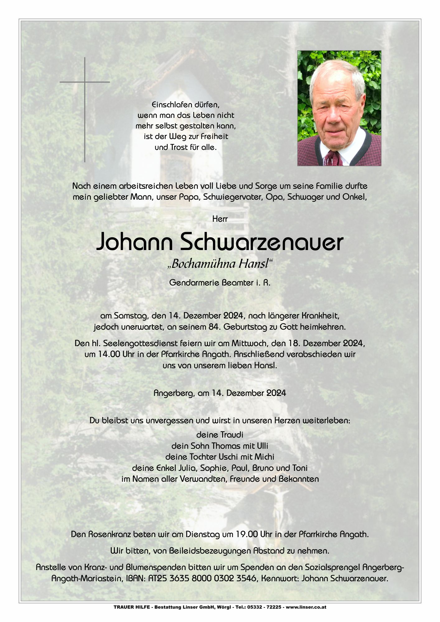 Bestattung wurde durchgeführt von: Walter Linser TrauerHilfe Bestattung Linser GmbH Wildschönauerstraße 41 6300 - Wörgl Tel.: 05332 72225 zum Bestatter