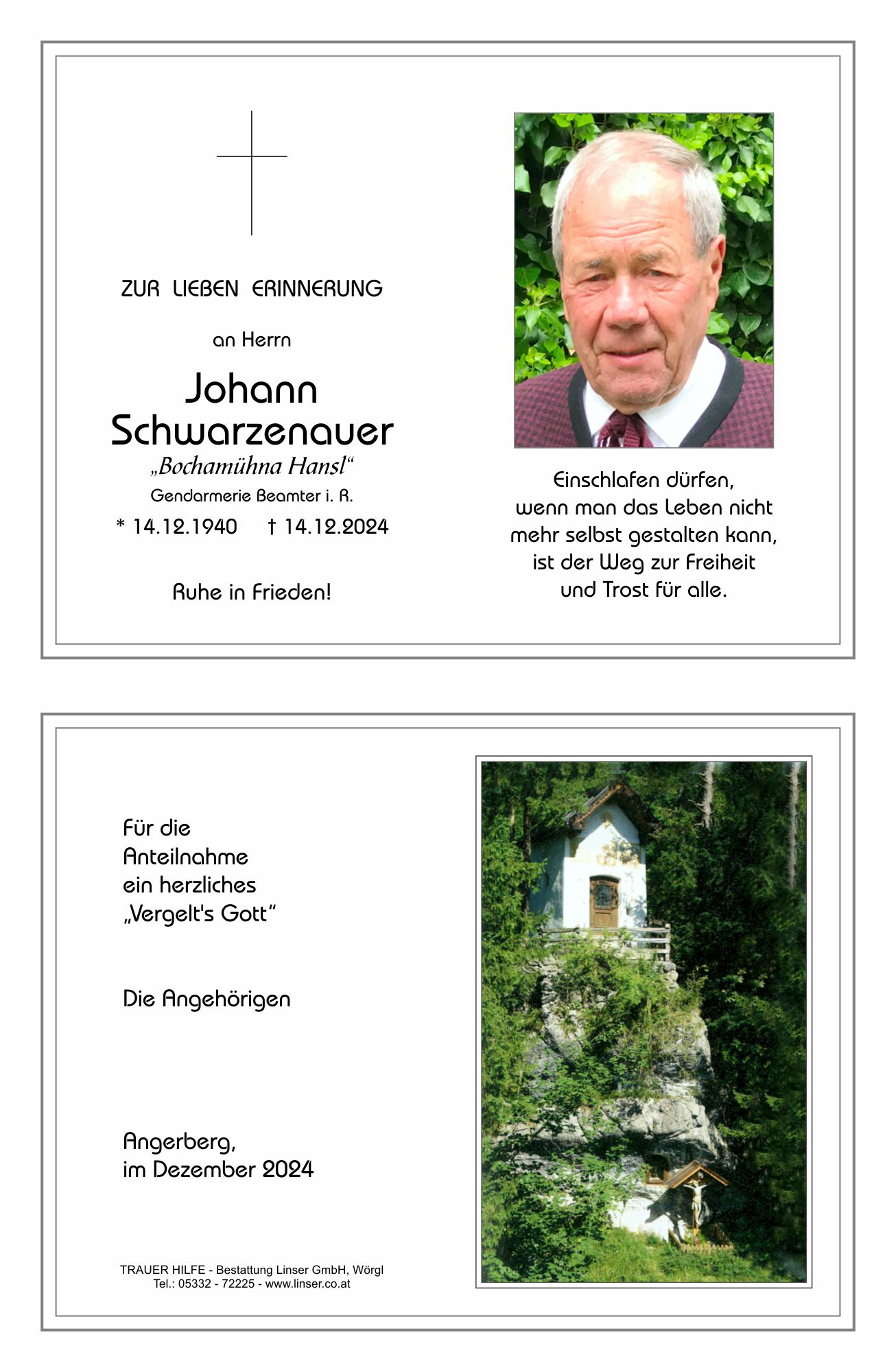 Neue Kerze für Johann Schwarzenauer entzünden.