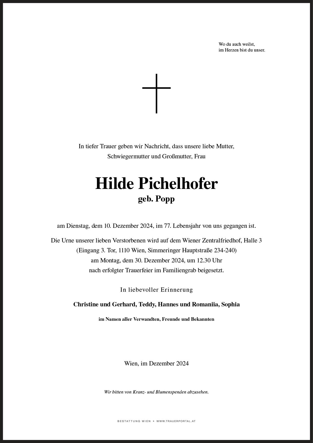Neue Kerze für Hildegard Anna Pichelhofer entzünden.