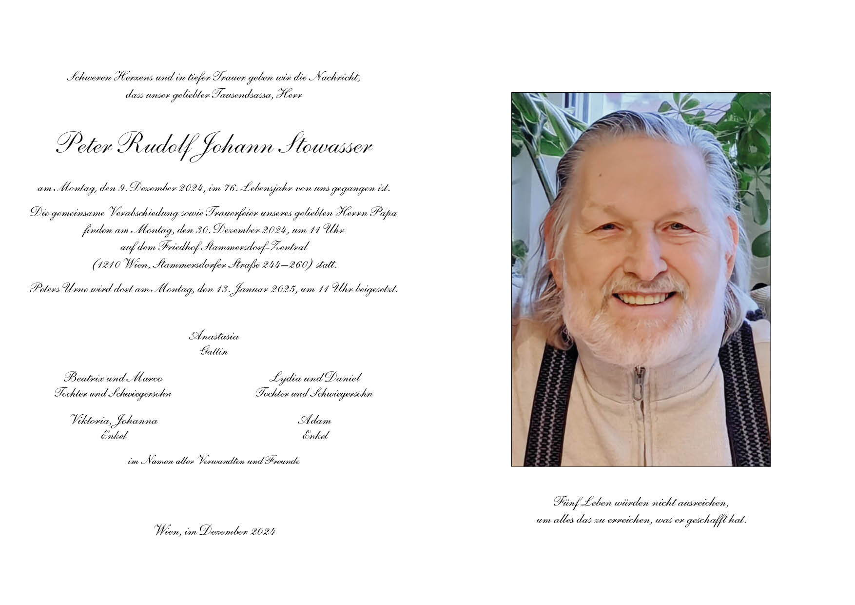 Bestattung wurde durchgeführt von: Bestattung Wien Bestattung Wien GmbH Simmeringer Hauptstraße 339 1110 - Wien (Simmering) Tel.: 01 501950 zum Bestatter