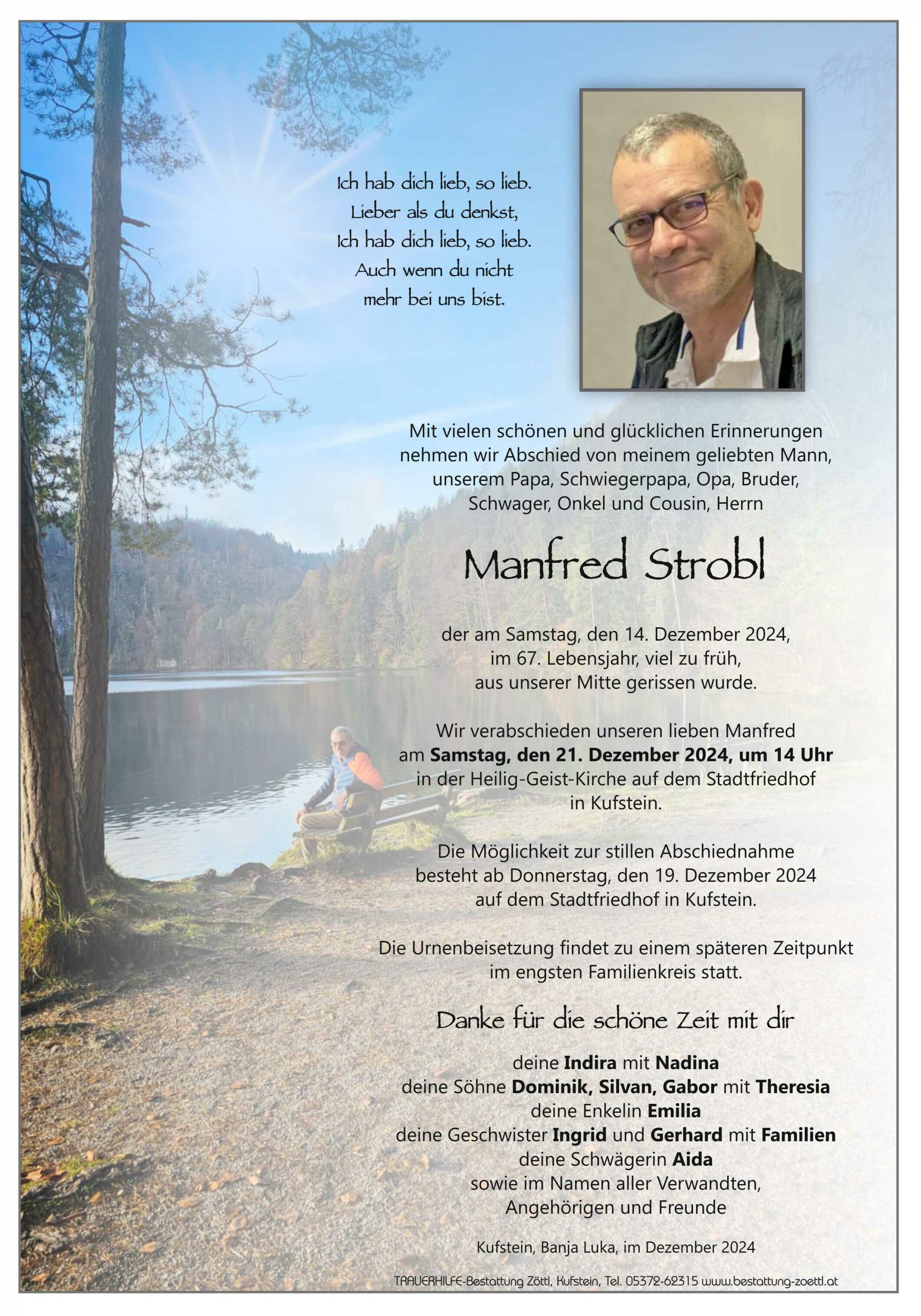 Indira, ich wünsche euch nicht nur viel Kraft und Stärke für diese schwere Zeit, sondern auch viele liebe Menschen um euch herum die euch Halt geben. Die euch Trost spenden, eure Tränen trocknen. Die euch in den Arm nehmen. Menschen mit denen ihr nicht nur weinen, sondern auch mal lachen könnt, wenn ihr von eurem lieben Manfred erzählt. Lachen, so wie er es immer gerne gemacht hat. Immer ein Späßchen auf den Lippen.