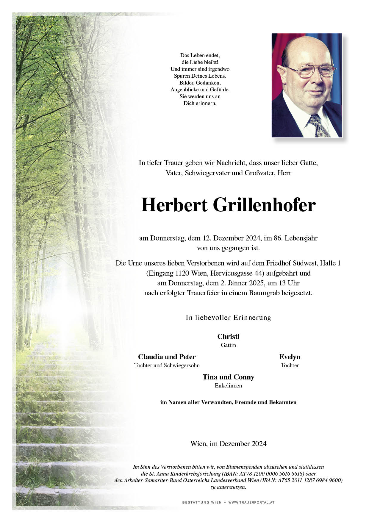 Bestattung wurde durchgeführt von: Bestattung Wien Bestattung Wien GmbH Simmeringer Hauptstraße 339 1110 - Wien (Simmering) Tel.: 01 501950 zum Bestatter