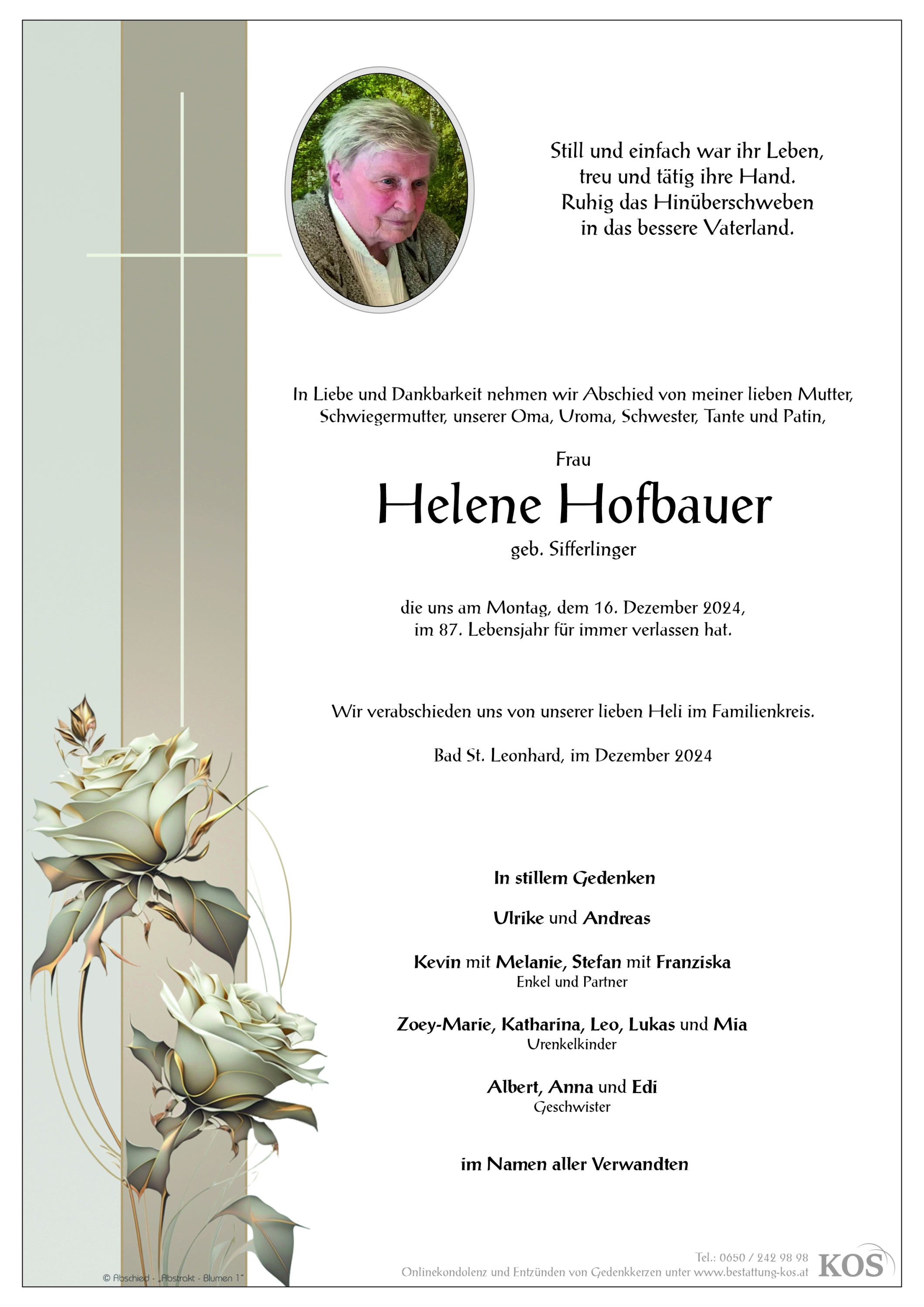 Liebe Frau Hofbauer es war uns eine Ehre dich begleiten zu dürfen 🕯
