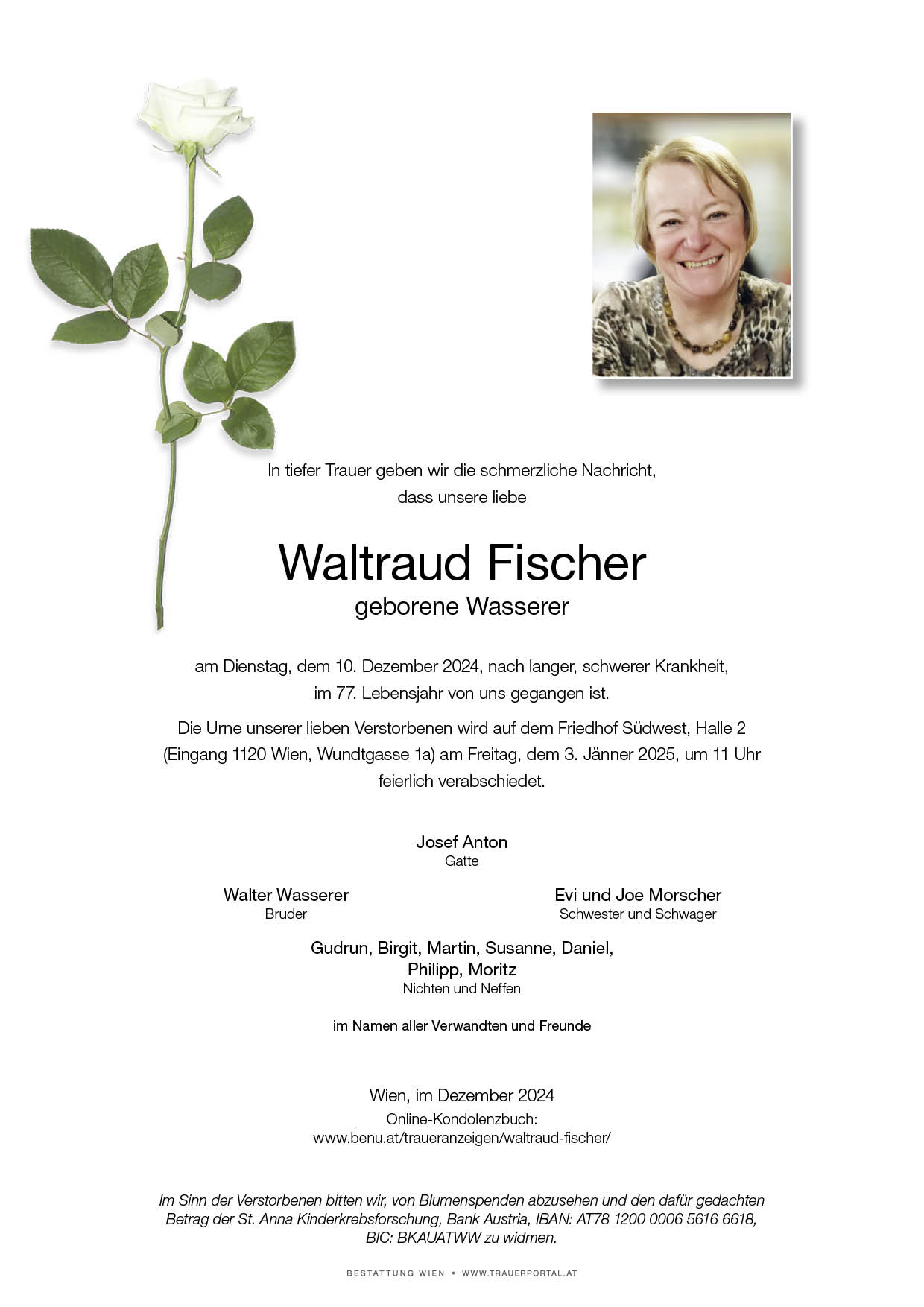 Bestattung wurde durchgeführt von: Bestattung Wien Bestattung Wien GmbH Simmeringer Hauptstraße 339 1110 - Wien (Simmering) Tel.: 01 501950 zum Bestatter