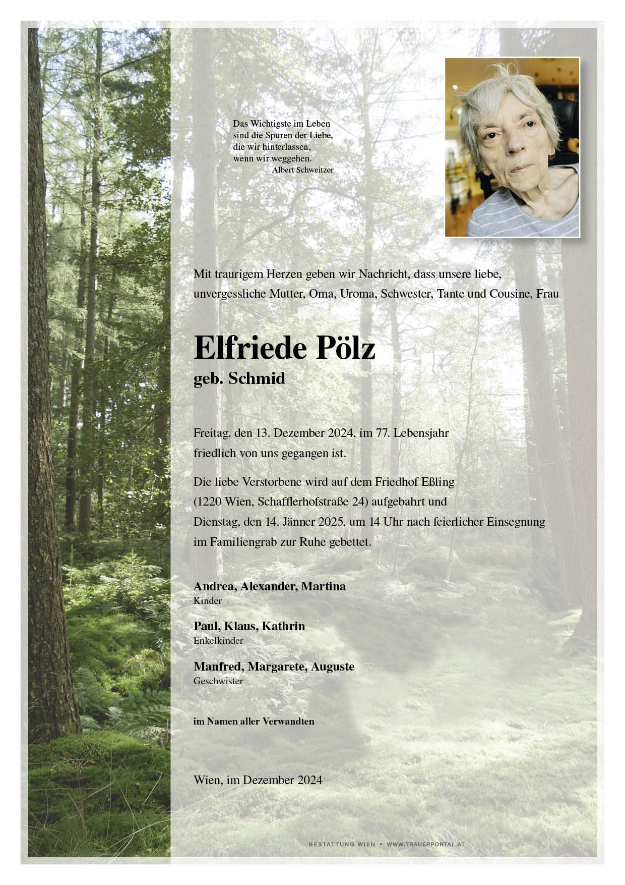 Bestattung wurde durchgeführt von: Bestattung Wien Bestattung Wien GmbH Simmeringer Hauptstraße 339 1110 - Wien (Simmering) Tel.: 01 501950 zum Bestatter