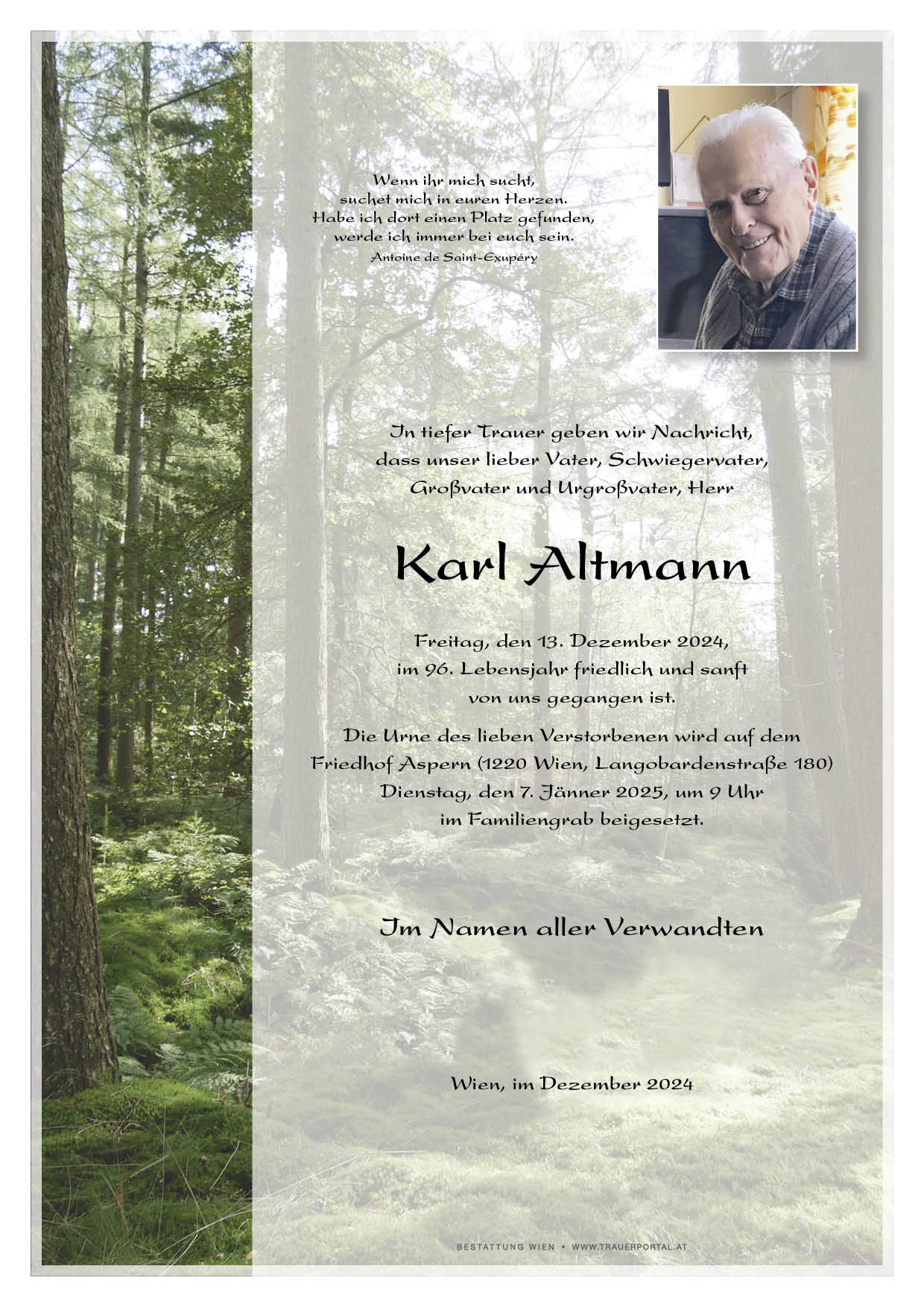 Bestattung wurde durchgeführt von: Bestattung Wien Bestattung Wien GmbH Simmeringer Hauptstraße 339 1110 - Wien (Simmering) Tel.: 01 501950 zum Bestatter