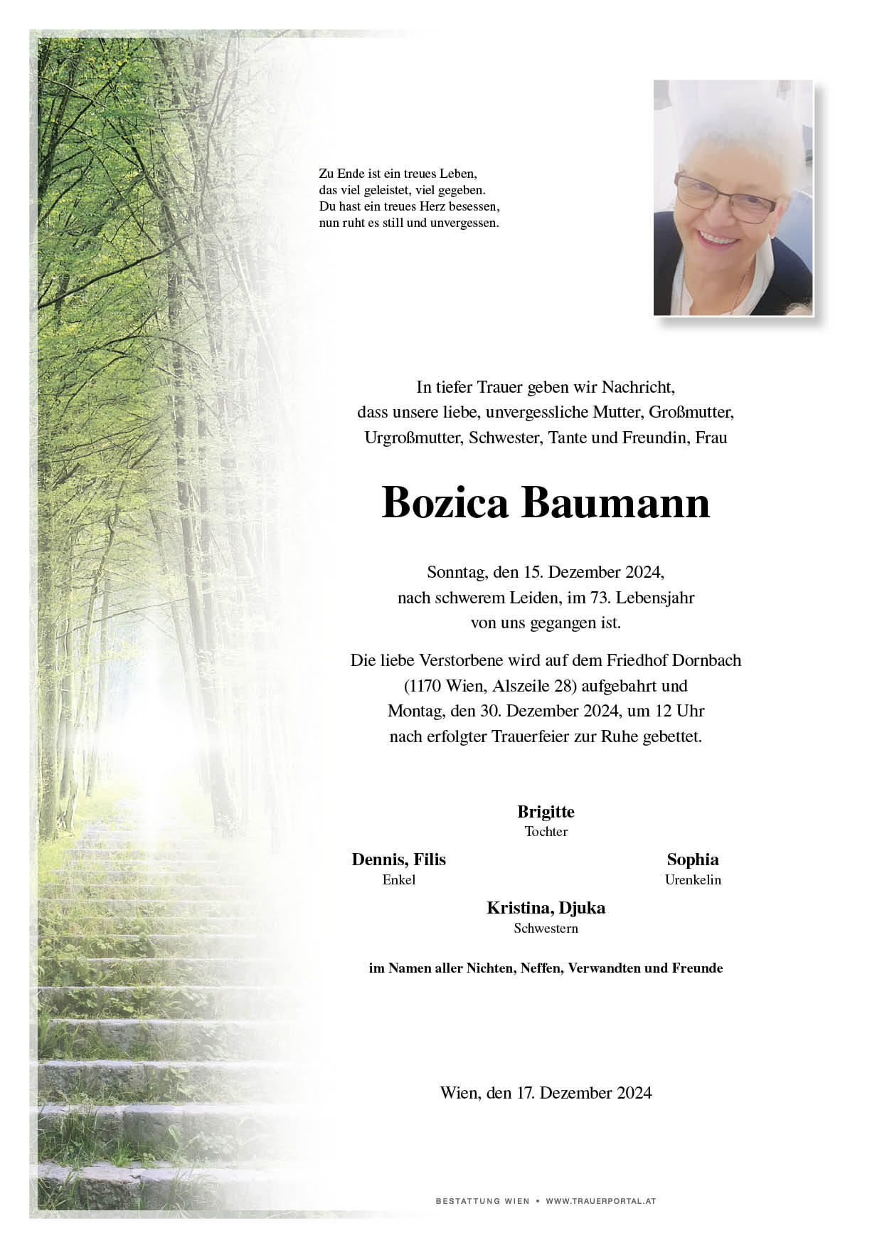 Bestattung wurde durchgeführt von: Bestattung Wien Bestattung Wien GmbH Simmeringer Hauptstraße 339 1110 - Wien (Simmering) Tel.: 01 501950 zum Bestatter