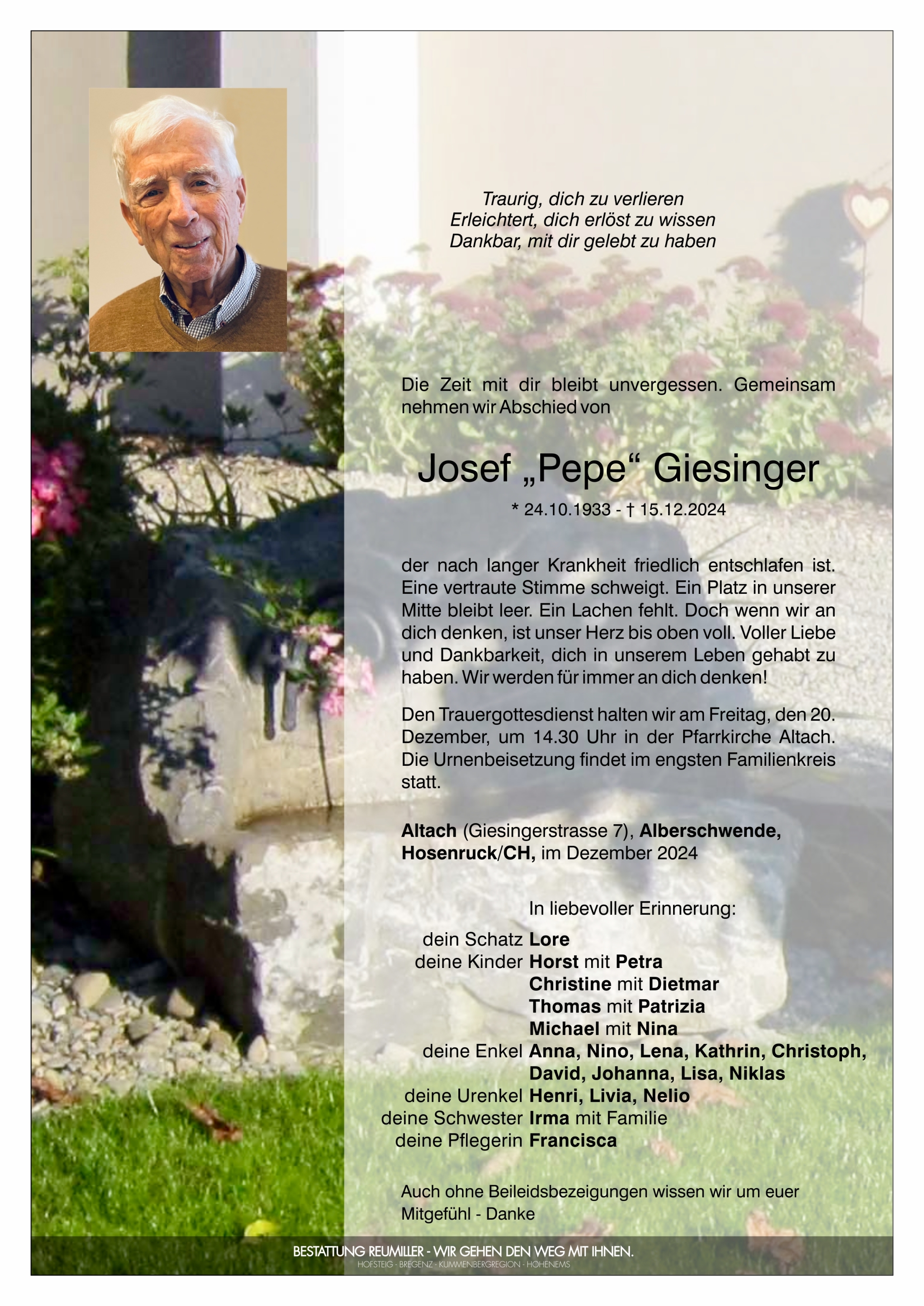 Friedhof Altach, † 15.12.2024 (91 Jahre)