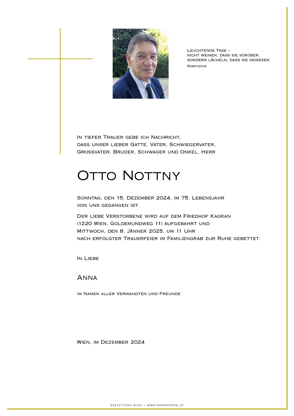Bestattung wurde durchgeführt von: Bestattung Wien Bestattung Wien GmbH Simmeringer Hauptstraße 339 1110 - Wien (Simmering) Tel.: 01 501950 zum Bestatter