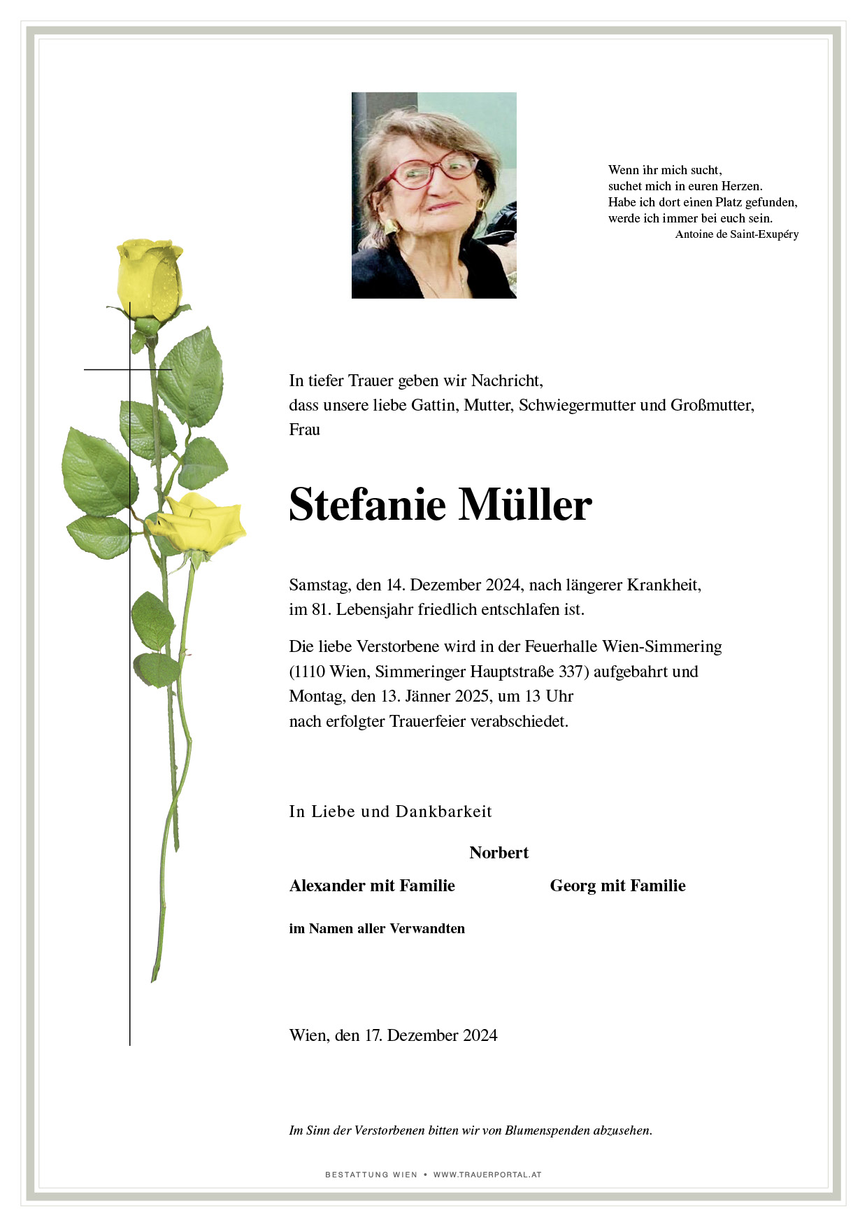 Bestattung wurde durchgeführt von: Bestattung Wien Bestattung Wien GmbH Simmeringer Hauptstraße 339 1110 - Wien (Simmering) Tel.: 01 501950 zum Bestatter