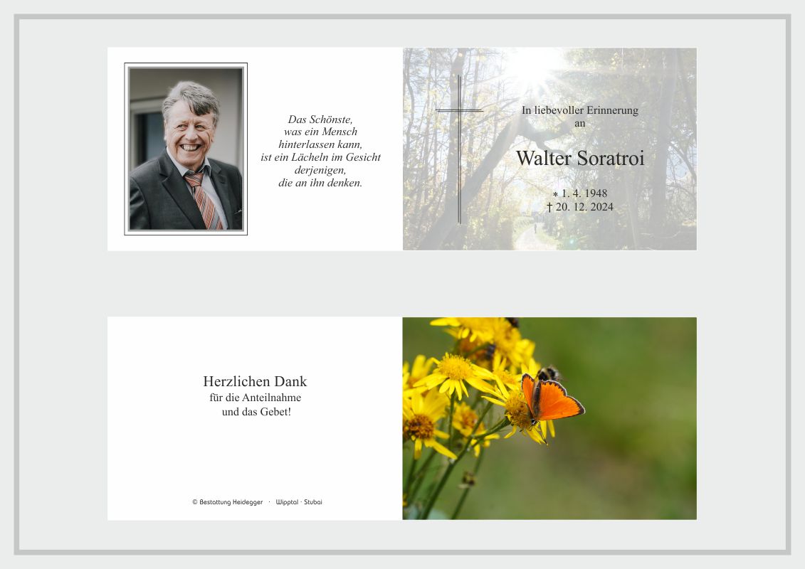 Bestattung wurde durchgeführt von: Karl Neurauter Karl Neurauter Bestattung Heidegger Brennerstraße 69 6150 - Steinach am Brenner Tel.: 05275 5211 zum Bestatter
