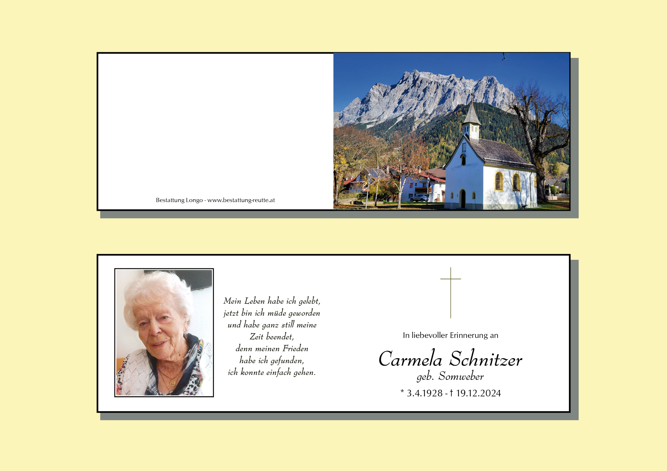 Liebe Sabine,Albert,Verena &,,Michael! Der Platz in unserem Kreis ist leer,unsere Mutter lebt nicht mehr,sie reicht uns hier nicht mehr die,der Tod zerriss das schöne Band. Hand. Liebe Sabine nun hat Carmela es geschafft bei ihren lieben Edi und Engeli zu sein mit stolzem Alter dufte sie jetzt ihre Augen schliessen.Wir wünschen euch viel Kraft in dieser schweren Stillen Zeit . Aufrichtige Anteilnahme Andrea , Günther ,Ramona ,Stefan und dein Cousin Viktor wir werden sie in guter Erinnerung behalten .