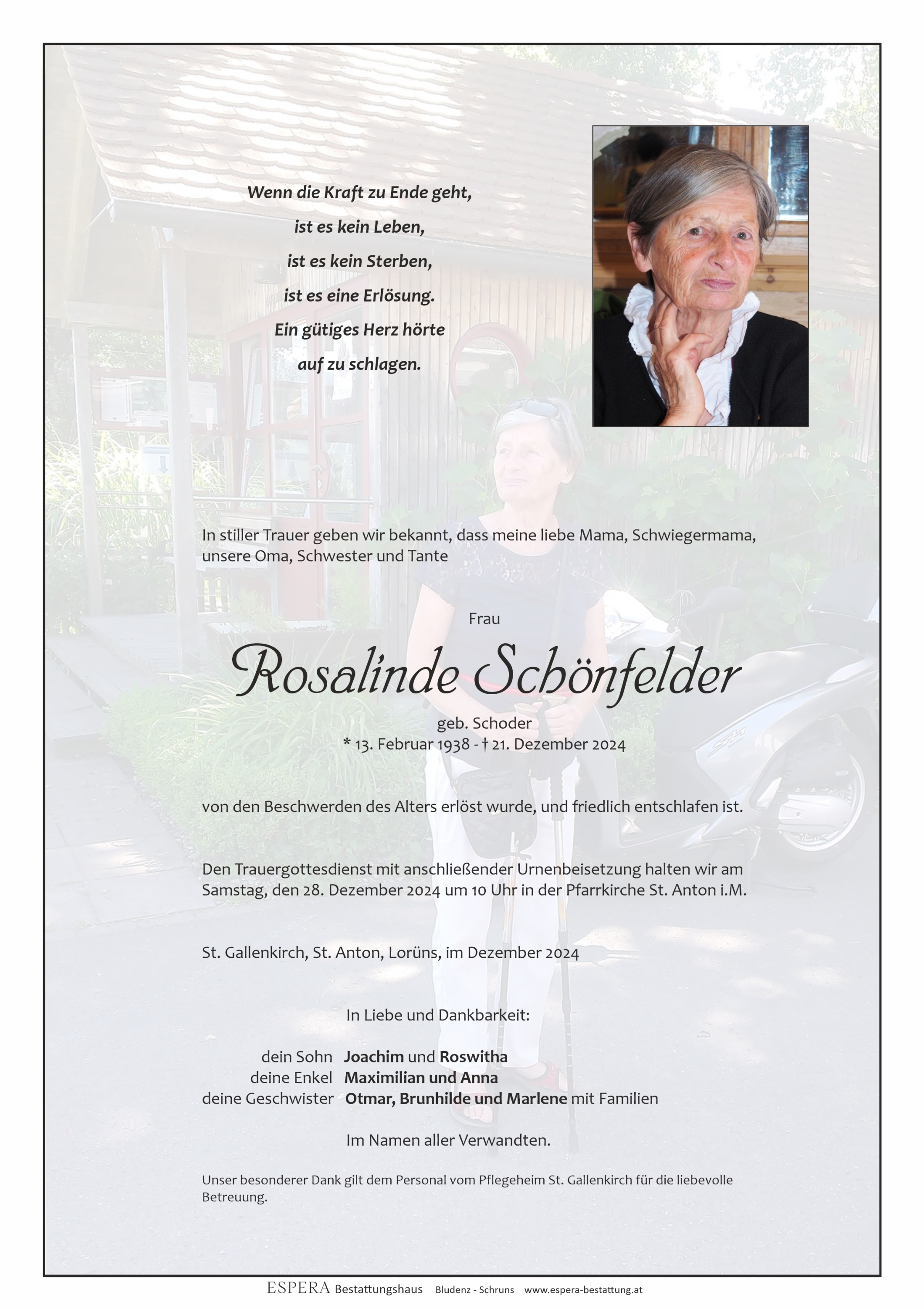 Bestattung wurde durchgeführt von: Espera Bestattungshaus Espera Sturnengasse 26 6700 - Bludenz Tel.: +43 5552 620790 zum Bestatter