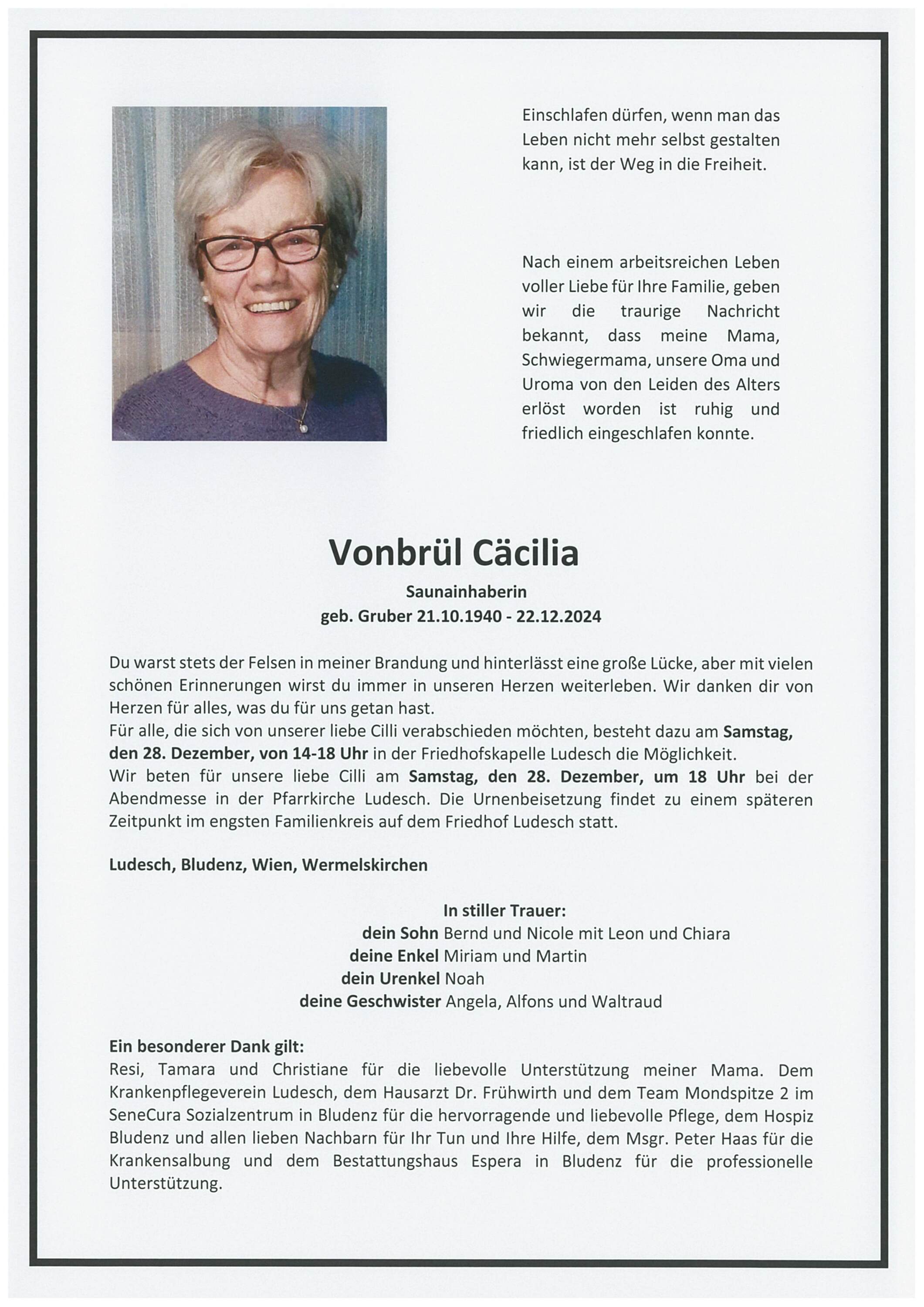 Neue Kerze für Cäcilia Vonbrül entzünden.