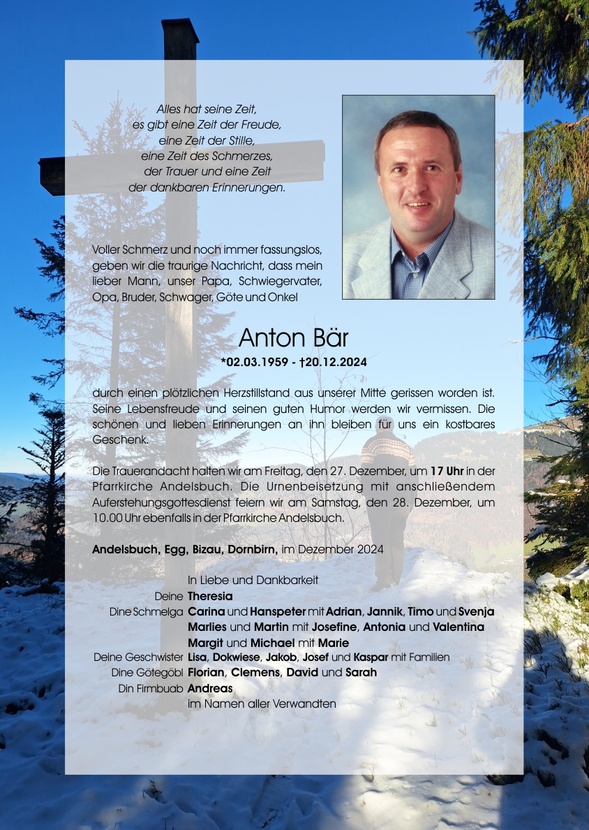 Friedhof Andelsbuch, † 20.12.2024 (65 Jahre)