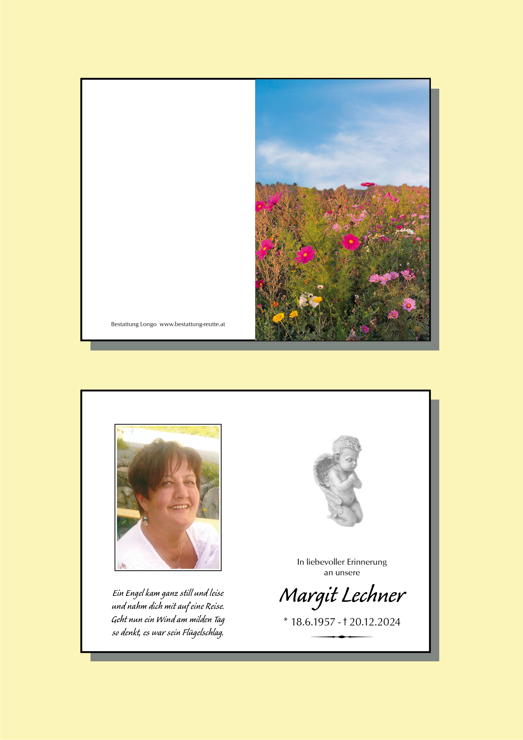 mit großer Traurigkeit nehmen wir Abschied von Eurer Mutter Margit, die ich sehr geschätzt und gemocht habe. Ihre freundliche und herzliche Art sowie ihr fröhliches Wesen werden mir immer in Erinnerung bleiben. Nie werde ich unsere gemeinsame Zeit vergessen, unsere Ausflüge und ihren Humor. Sie hat uns oft zum Lachen gebracht.
