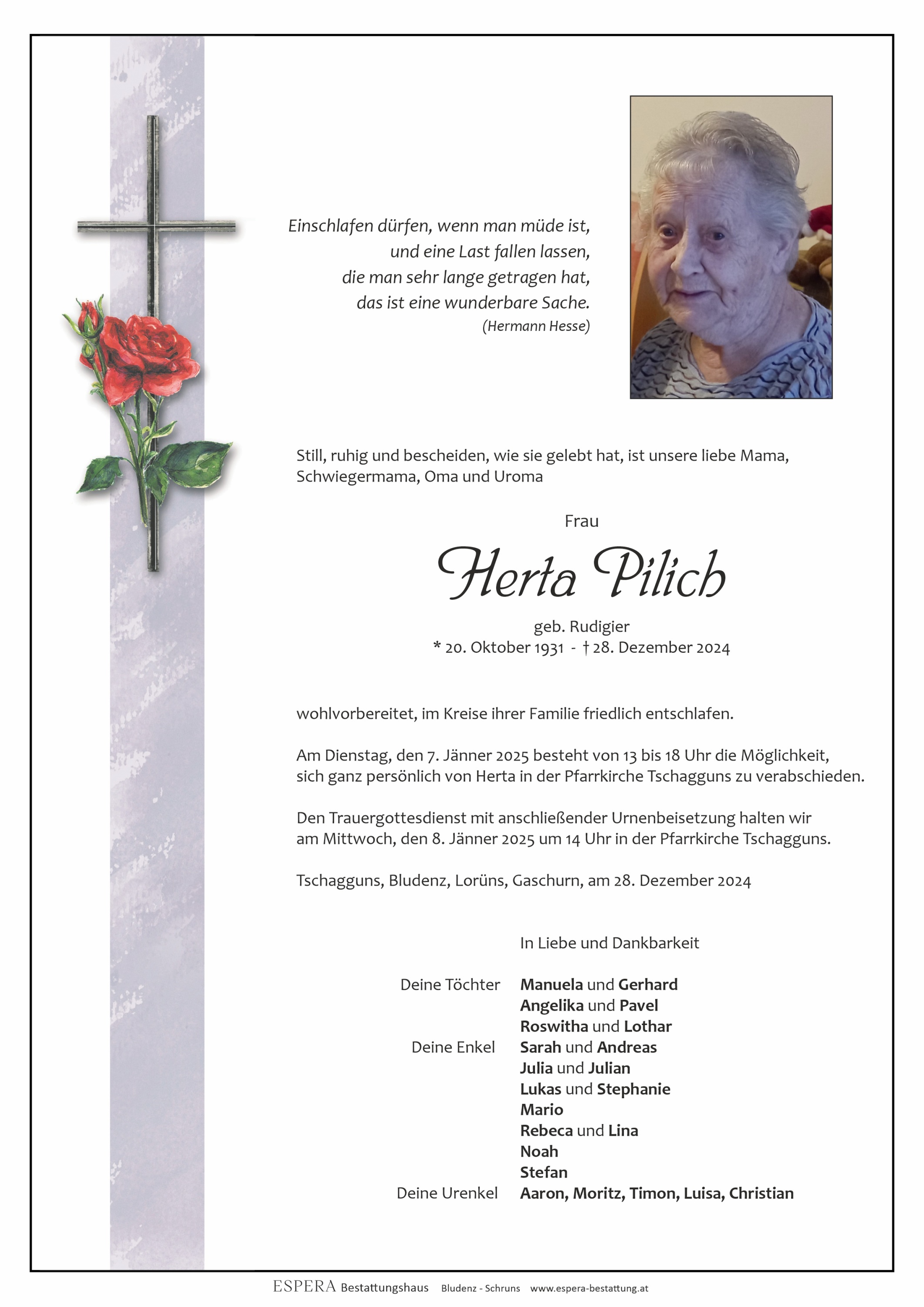 Bestattung wurde durchgeführt von: Espera Bestattungshaus Espera Sturnengasse 26 6700 - Bludenz Tel.: +43 5552 620790 zum Bestatter