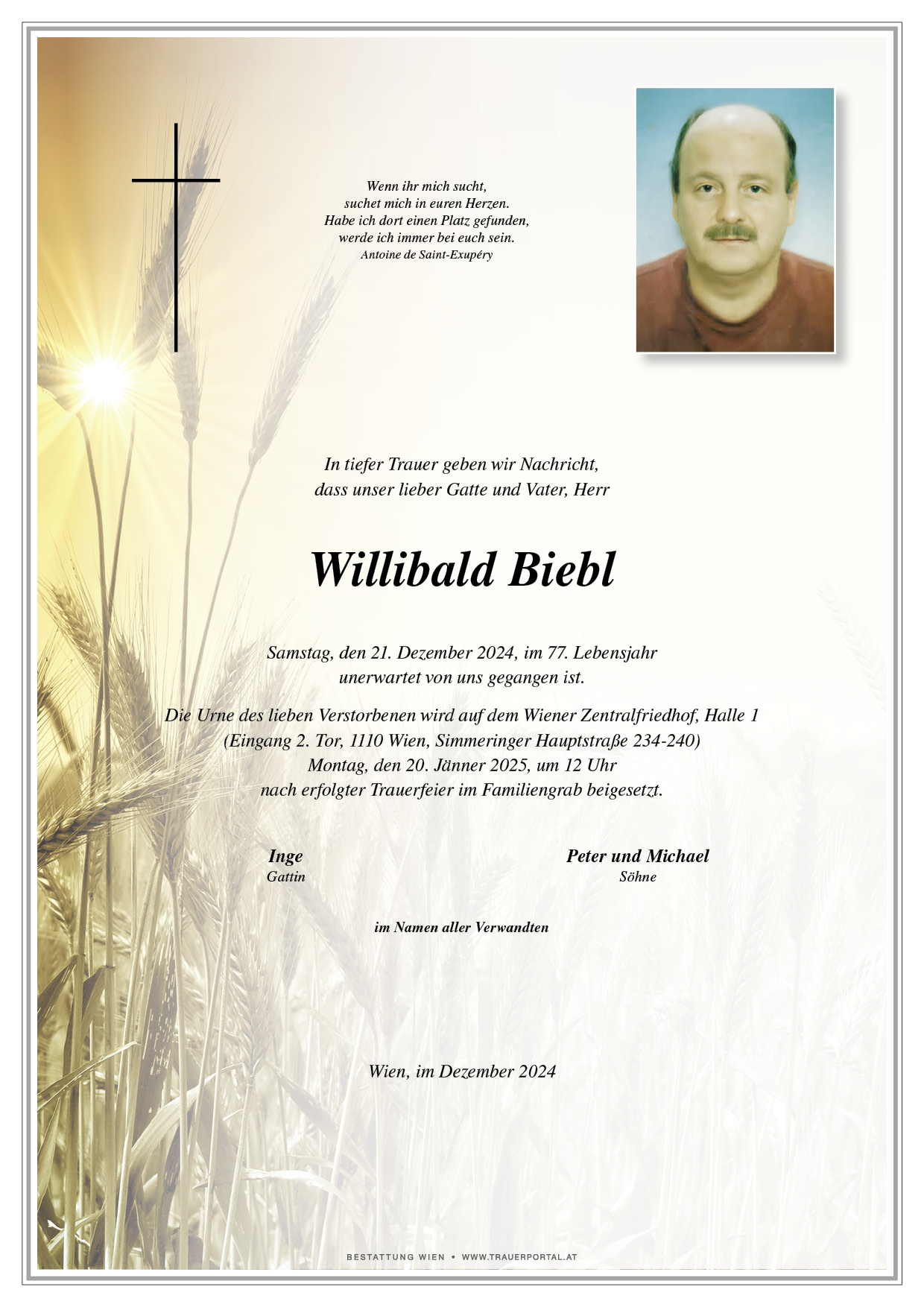 Friedhof † 21.12.2024 (76 Jahre)