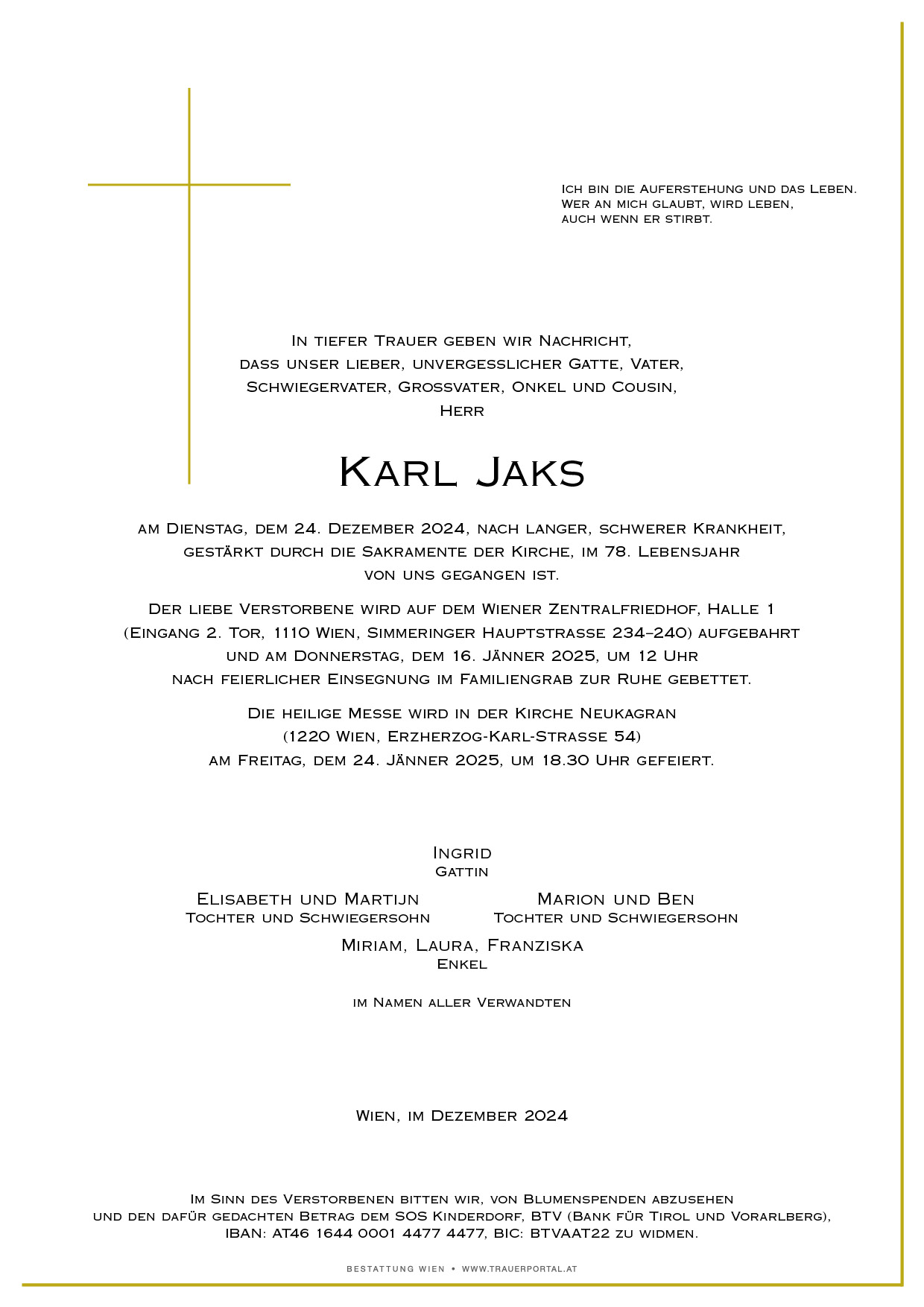 Bestattung wurde durchgeführt von: Bestattung Wien Bestattung Wien GmbH Simmeringer Hauptstraße 339 1110 - Wien (Simmering) Tel.: 01 501950 zum Bestatter