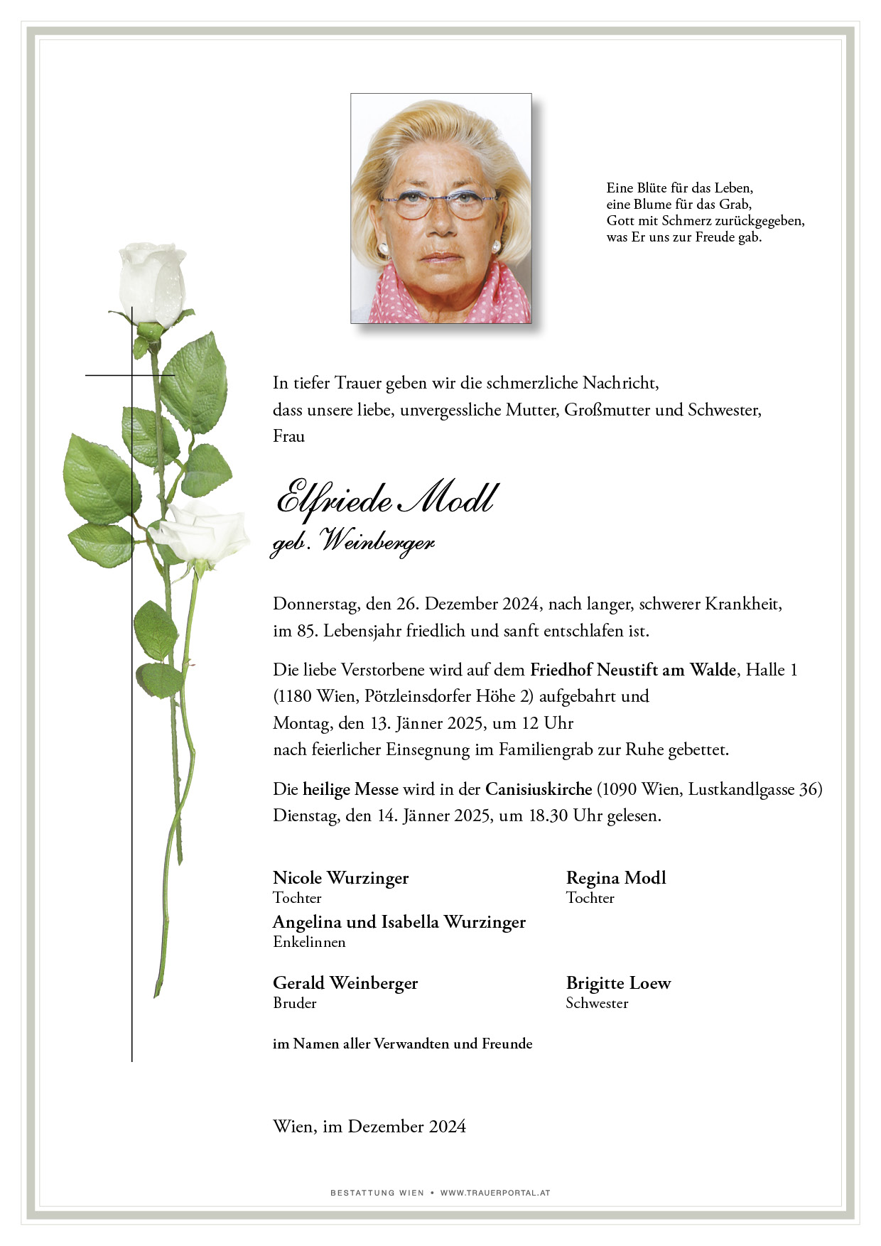 Bestattung wurde durchgeführt von: Bestattung Wien Bestattung Wien GmbH Simmeringer Hauptstraße 339 1110 - Wien (Simmering) Tel.: 01 501950 zum Bestatter