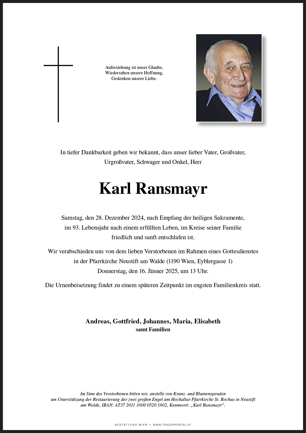 Bestattung wurde durchgeführt von: Bestattung Wien Bestattung Wien GmbH Simmeringer Hauptstraße 339 1110 - Wien (Simmering) Tel.: 01 501950 zum Bestatter