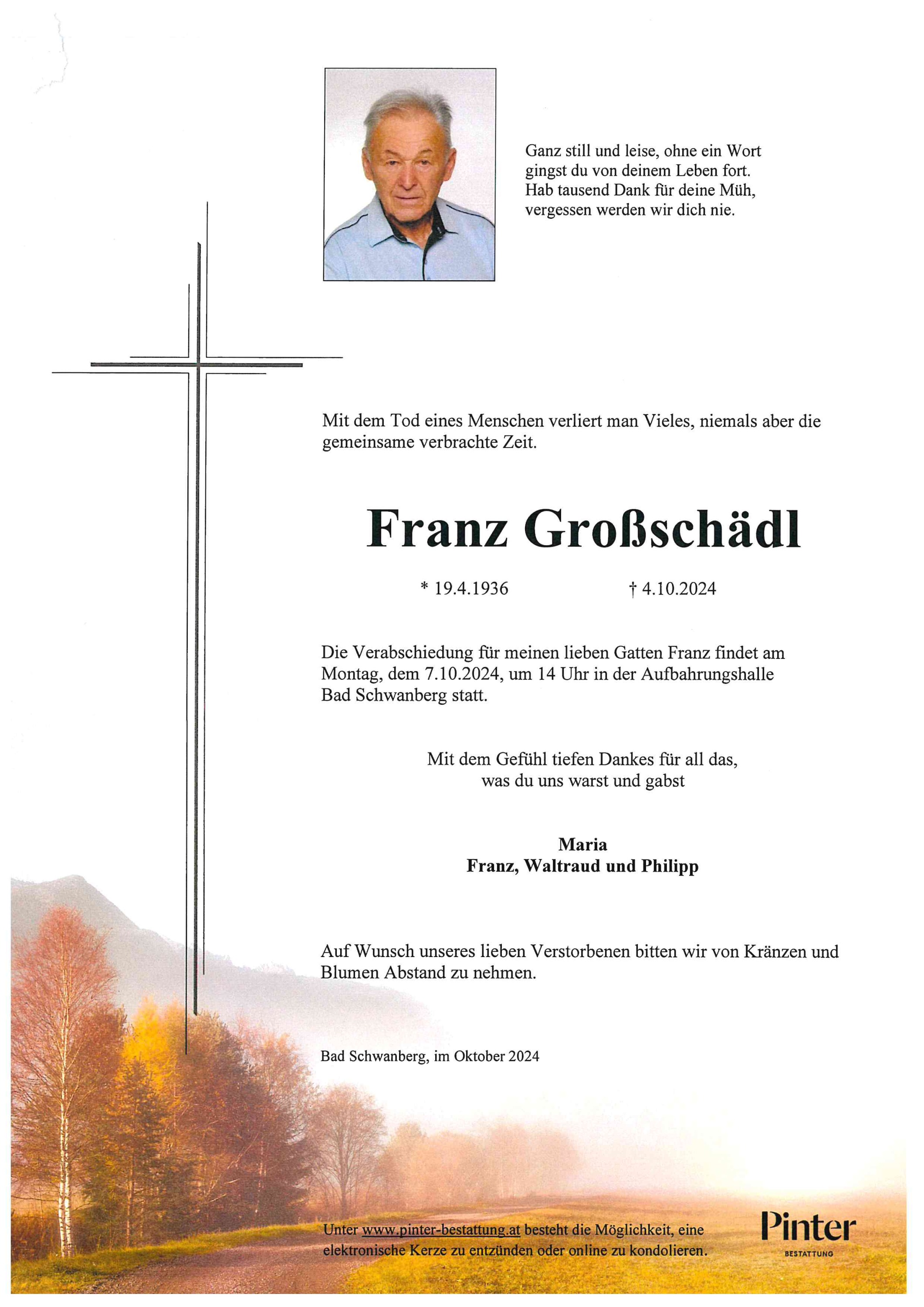 Bestattung wurde durchgeführt von: Pinter GmbH Pinter GmbH Nelkengasse 1-3 8530 - Deutschlandsberg Tel.: +43 3462 2907 zum Bestatter