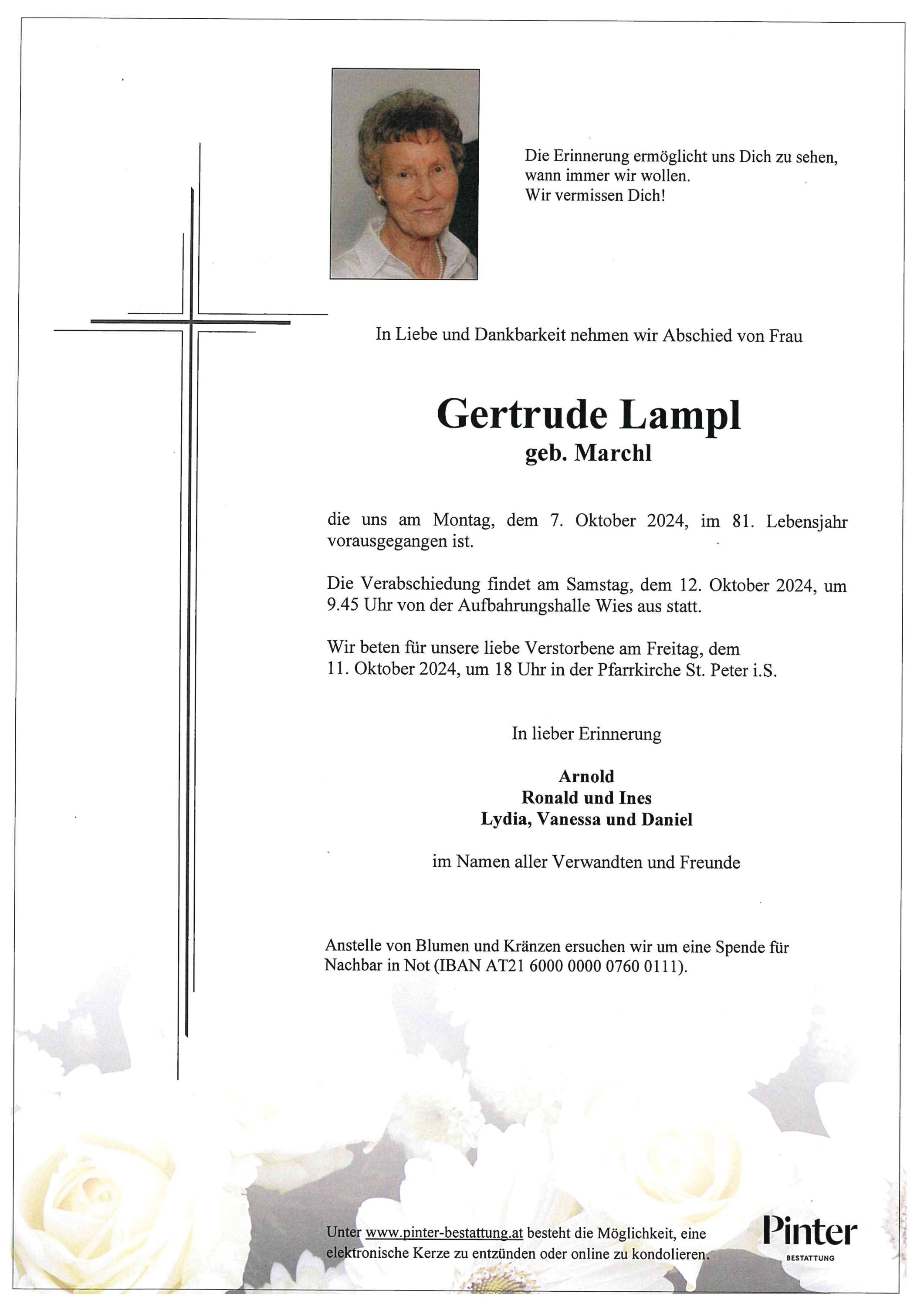 Bestattung wurde durchgeführt von: Pinter GmbH Pinter GmbH Nelkengasse 1-3 8530 - Deutschlandsberg Tel.: +43 3462 2907 zum Bestatter