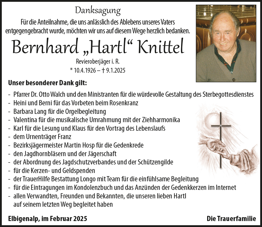 Aufrichtige Anteilnahme, der Vorstand des Jagdschutzvereins- Bezirk Reutte;
