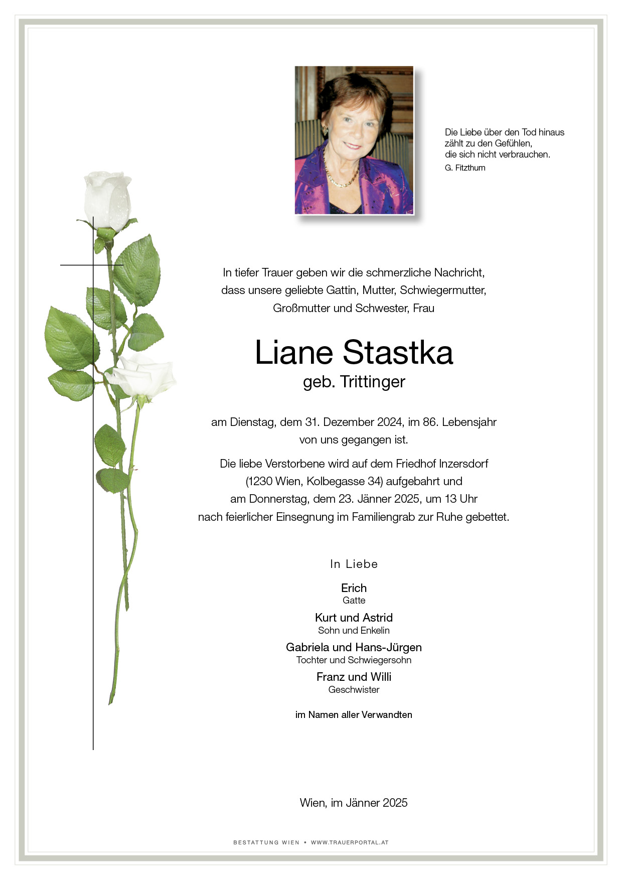 Bestattung wurde durchgeführt von: Bestattung Wien Bestattung Wien GmbH Simmeringer Hauptstraße 339 1110 - Wien (Simmering) Tel.: 01 501950 zum Bestatter