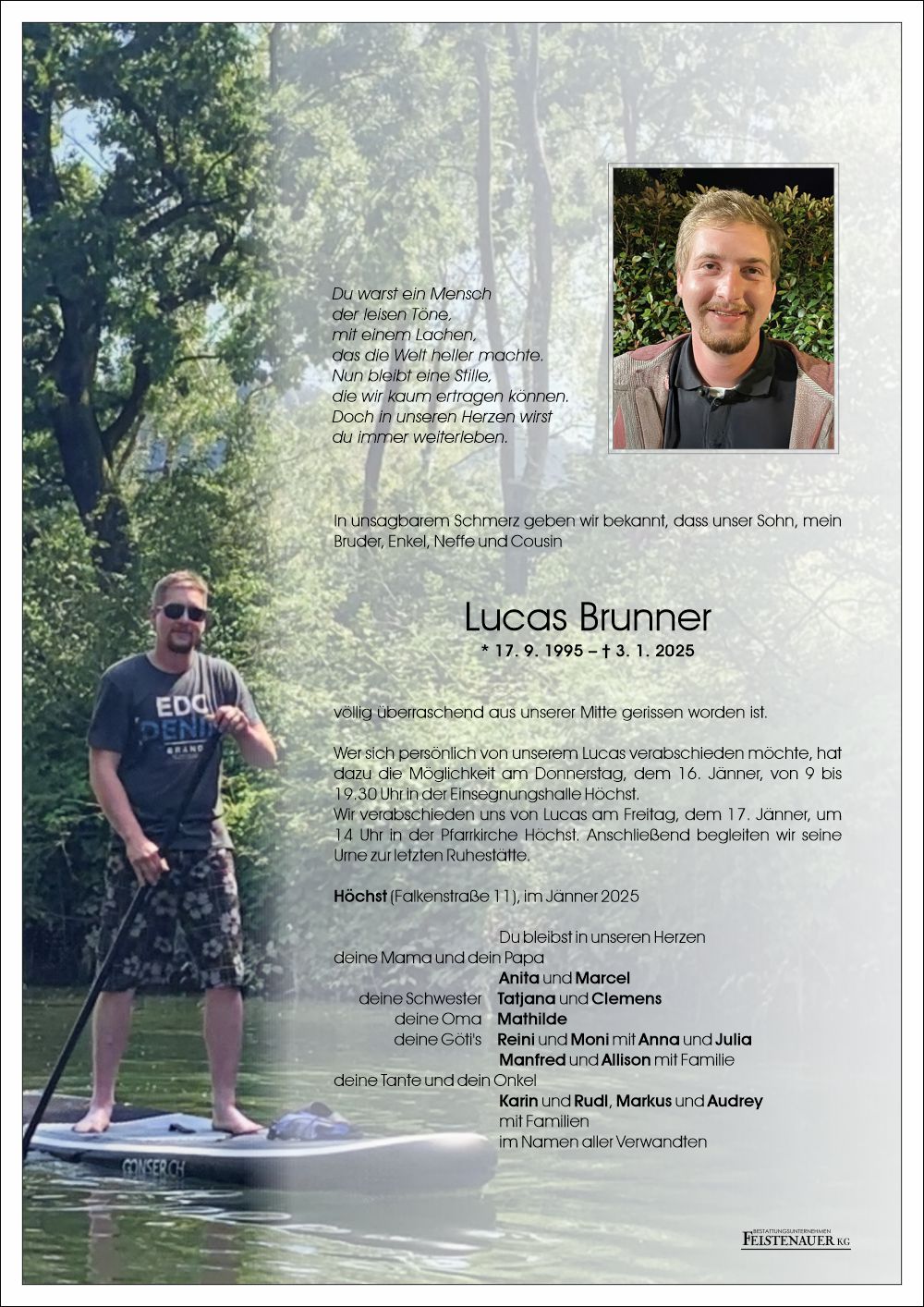 Bestattung wurde durchgeführt von: Angelika Matheisl Bestattung Feistenauer Holzstraße 54 6890 - Lustenau Tel.: 05577 87100 zum Bestatter
