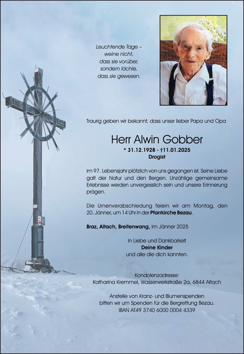 Friedhof Bezau, † 11.01.2025 (96 Jahre)
