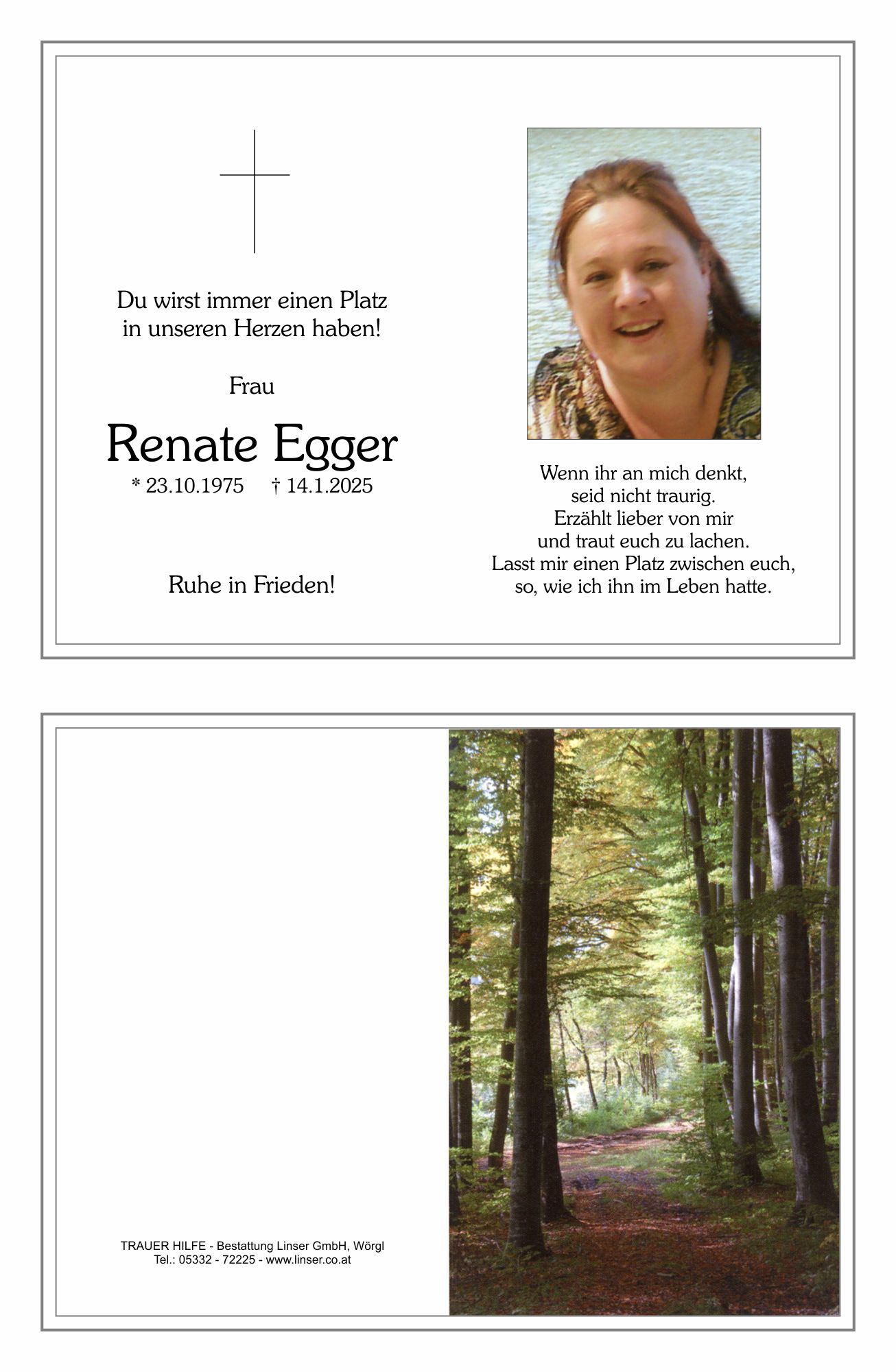 Bestattung wurde durchgeführt von: Walter Linser TrauerHilfe Bestattung Linser GmbH Wildschönauerstraße 41 6300 - Wörgl Tel.: 05332 72225 zum Bestatter