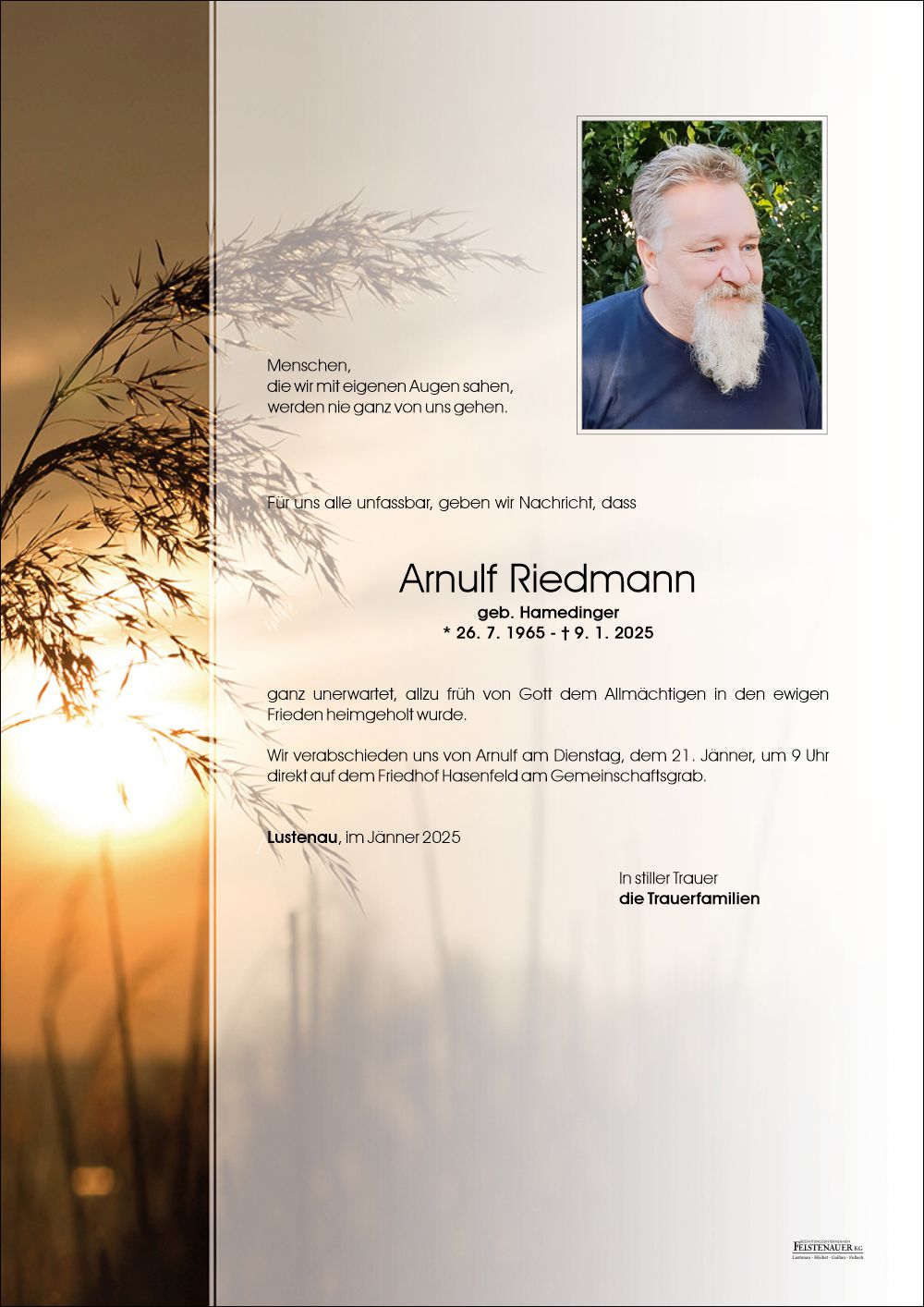 Friedhof Lustenau - Hasenfeld, † 09.01.2025 (59 Jahre)