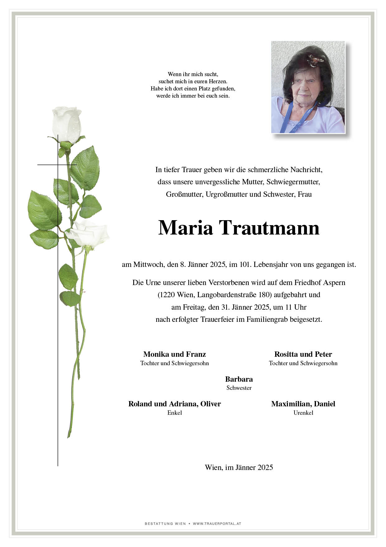 Bestattung wurde durchgeführt von: Bestattung Wien Bestattung Wien GmbH Simmeringer Hauptstraße 339 1110 - Wien (Simmering) Tel.: 01 501950 zum Bestatter