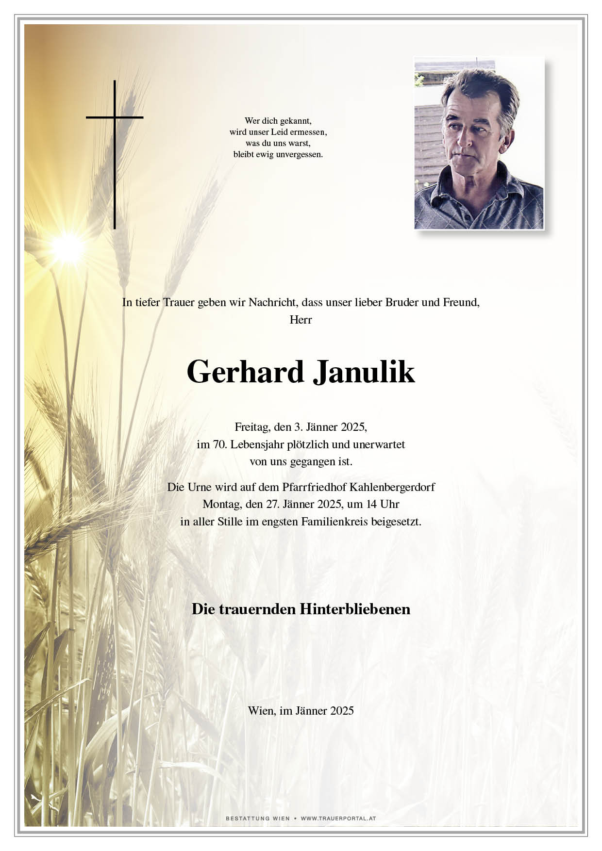 Friedhof † 03.01.2025 (69 Jahre)