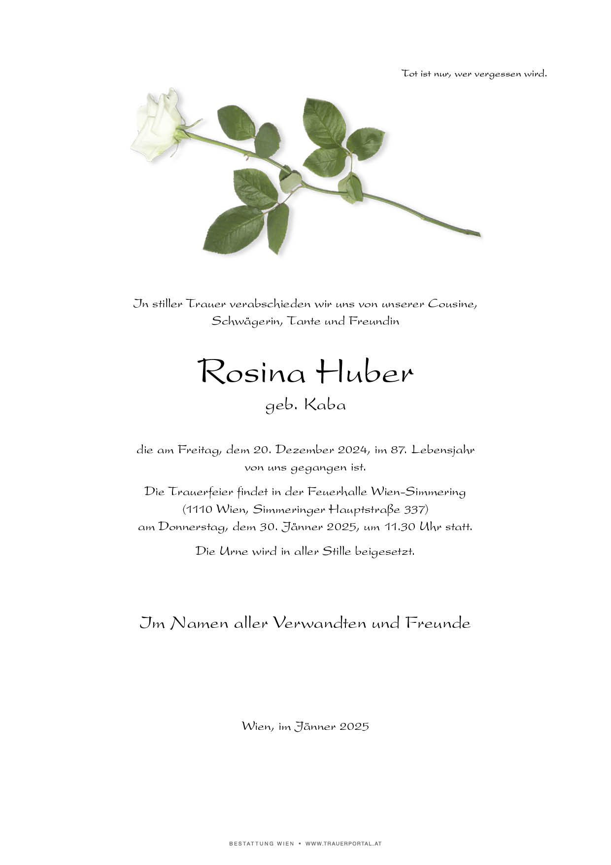Bestattung wurde durchgeführt von: Bestattung Wien Bestattung Wien GmbH Simmeringer Hauptstraße 339 1110 - Wien (Simmering) Tel.: 01 501950 zum Bestatter