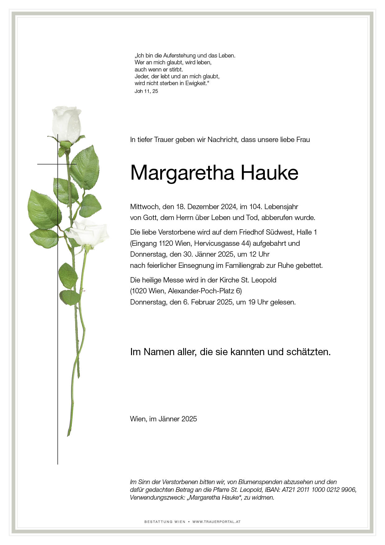 Bestattung wurde durchgeführt von: Bestattung Wien Bestattung Wien GmbH Simmeringer Hauptstraße 339 1110 - Wien (Simmering) Tel.: 01 501950 zum Bestatter