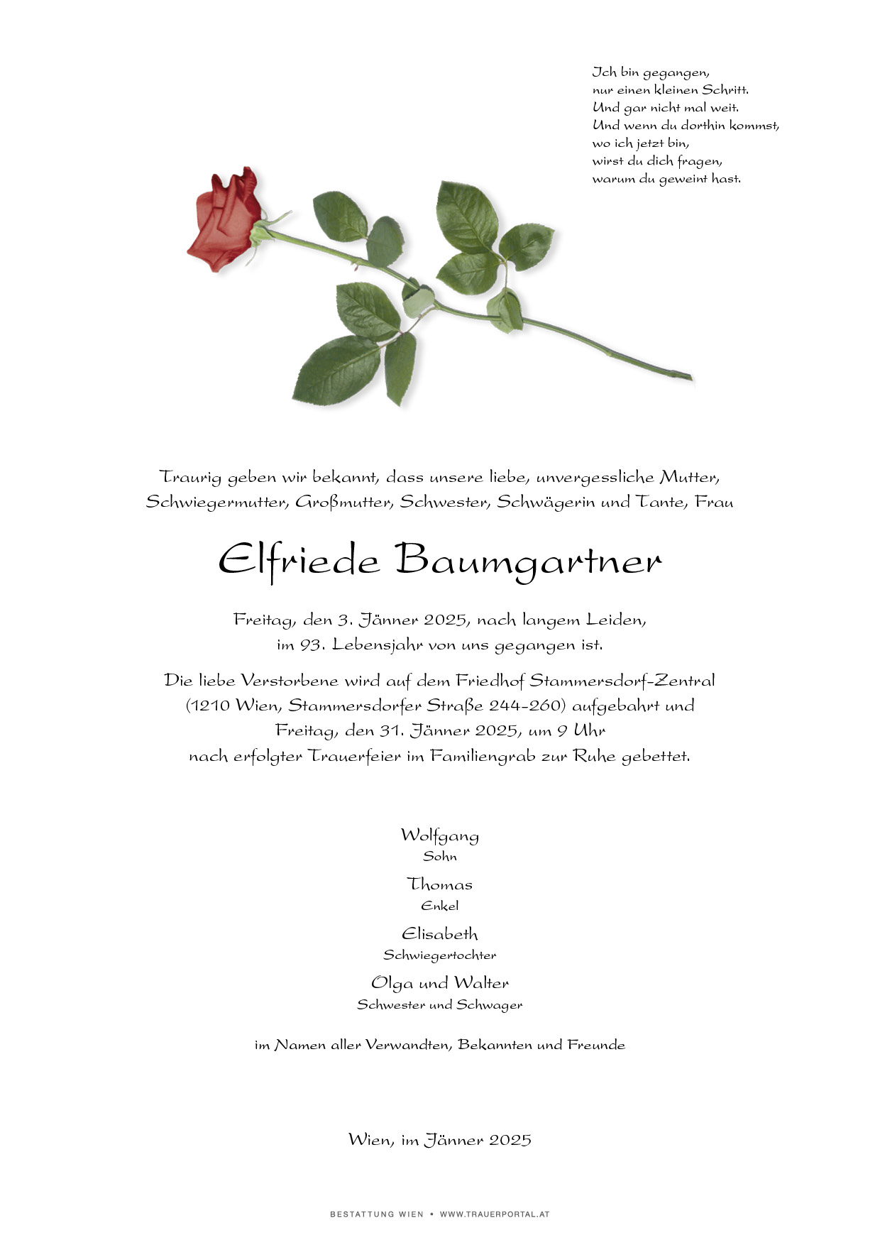 Bestattung wurde durchgeführt von: Bestattung Wien Bestattung Wien GmbH Simmeringer Hauptstraße 339 1110 - Wien (Simmering) Tel.: 01 501950 zum Bestatter