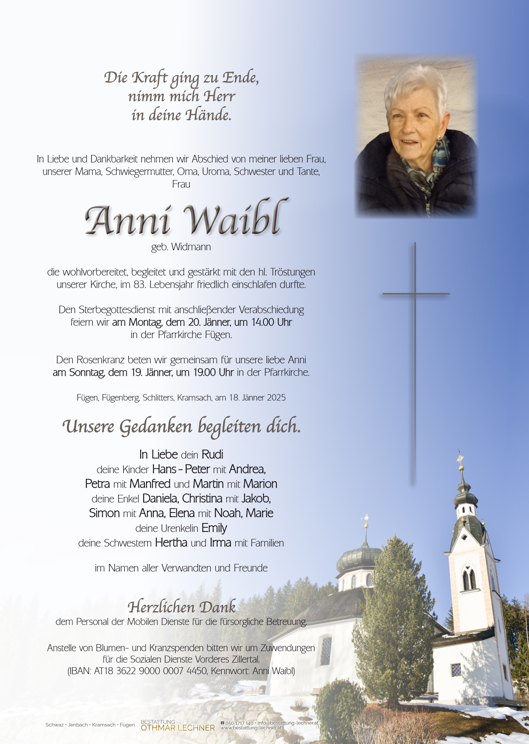 Friedhof Fügen, † 18.01.2025 (82 Jahre)